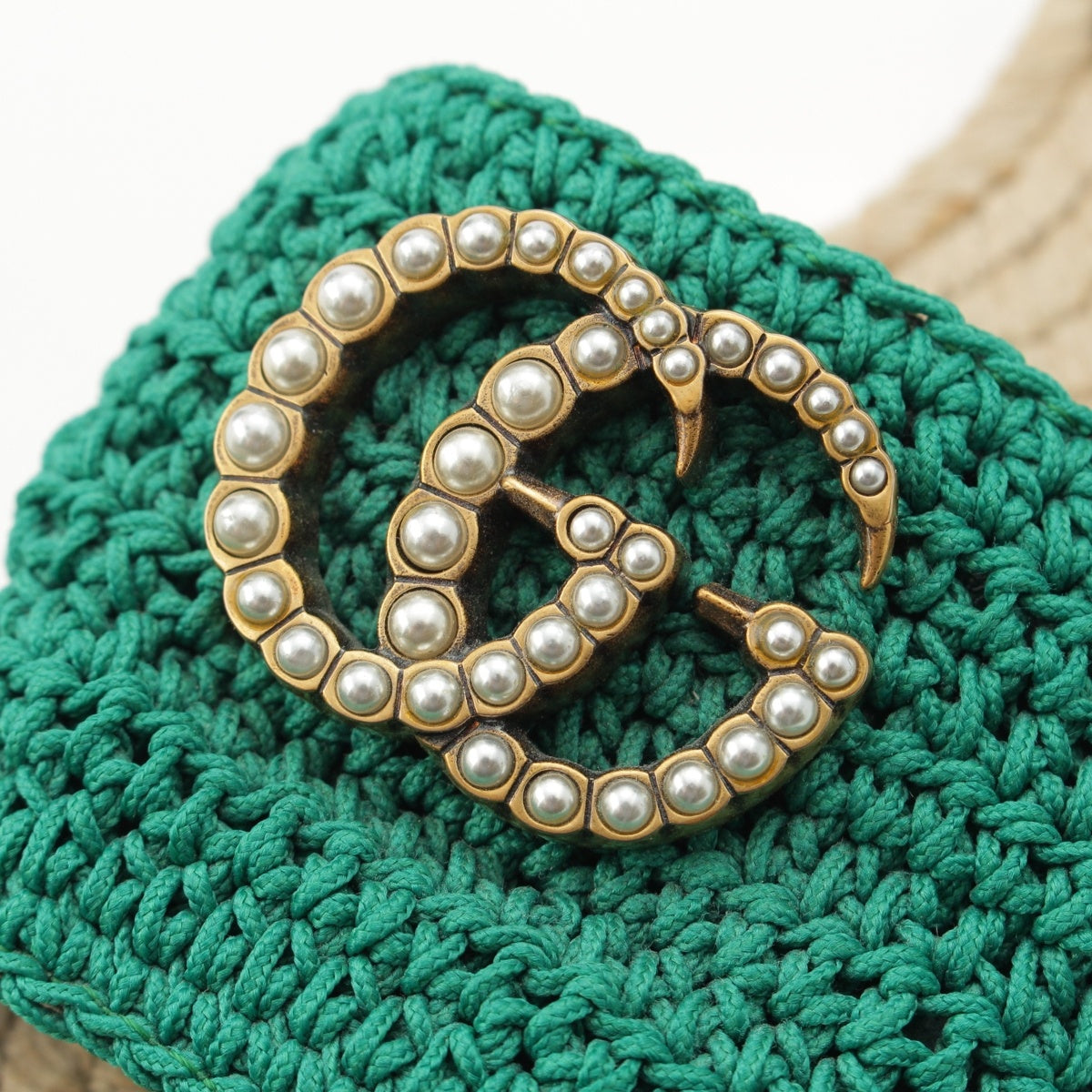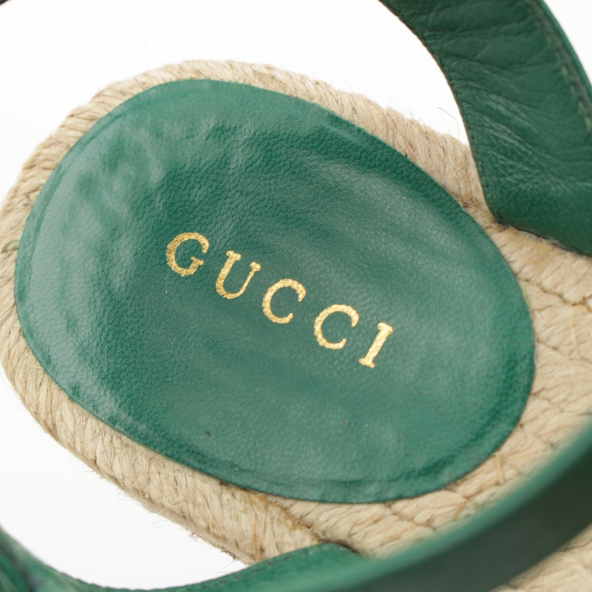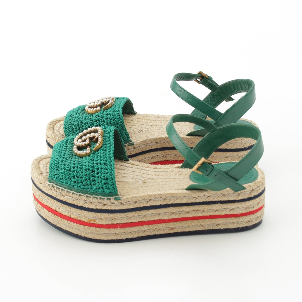 GUCCI leather GG Marmont pearl wedge Sandals green 35 1/2