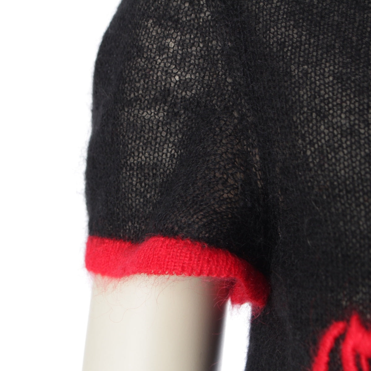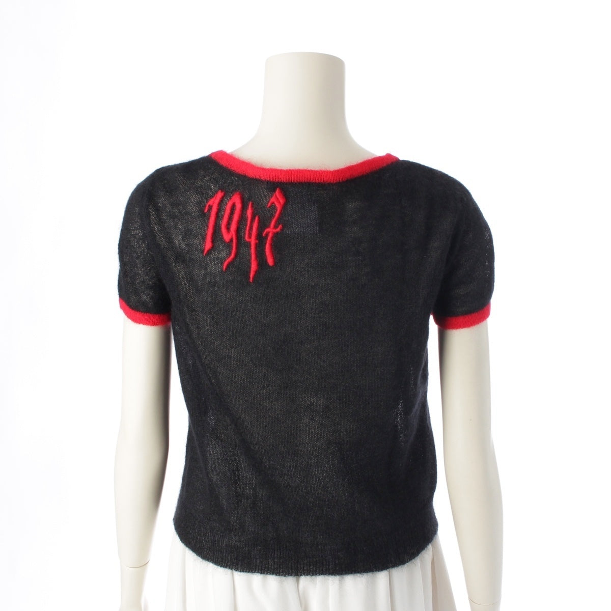 Dior Mohair x Wool x Nylon Logo embroidered short sleeve sweater knit tops 2A13055070 Black x red 38