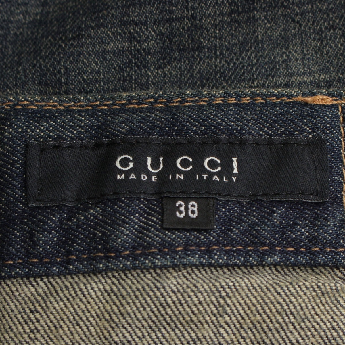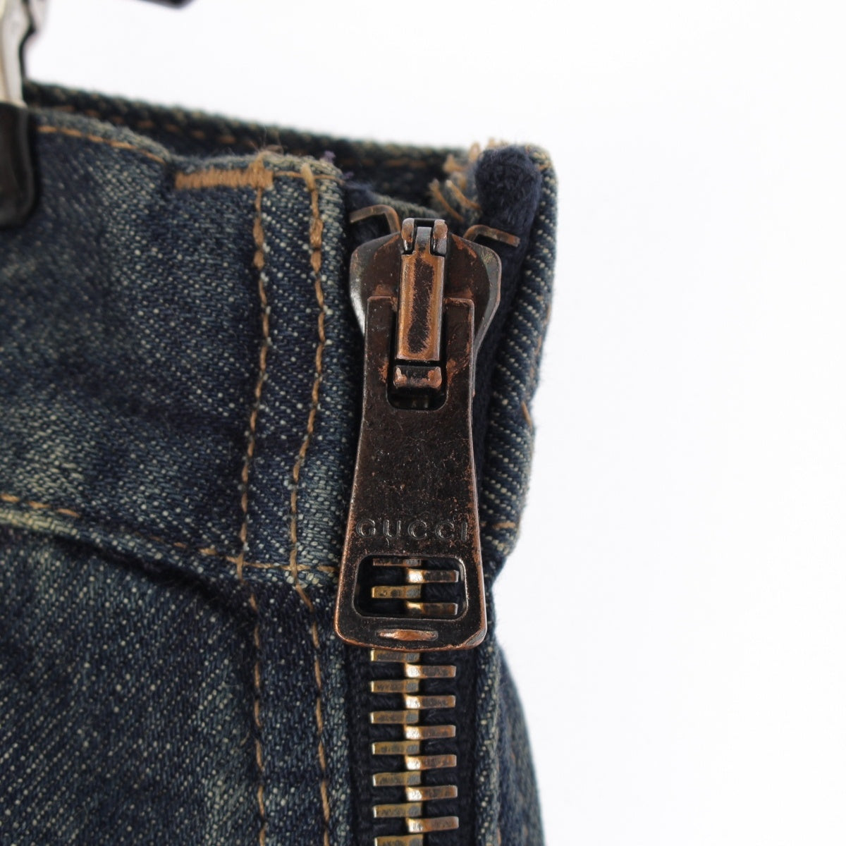 GUCCI cotton Tom Ford-era logo patch side zip denim skirt Bottoms Indigo 38