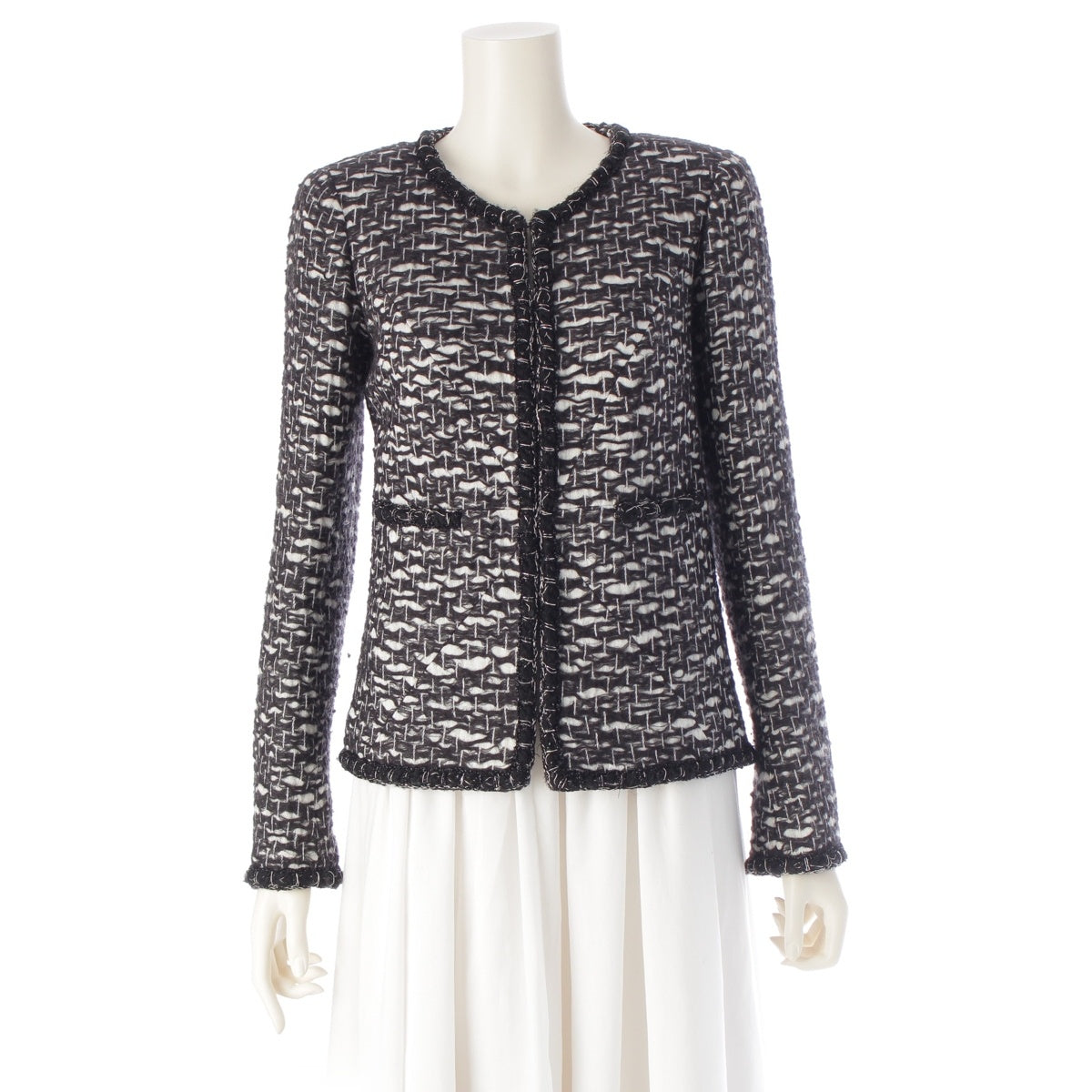 CHANEL wool COCO Mark Trimming No color jacket P39053 Black x white 34