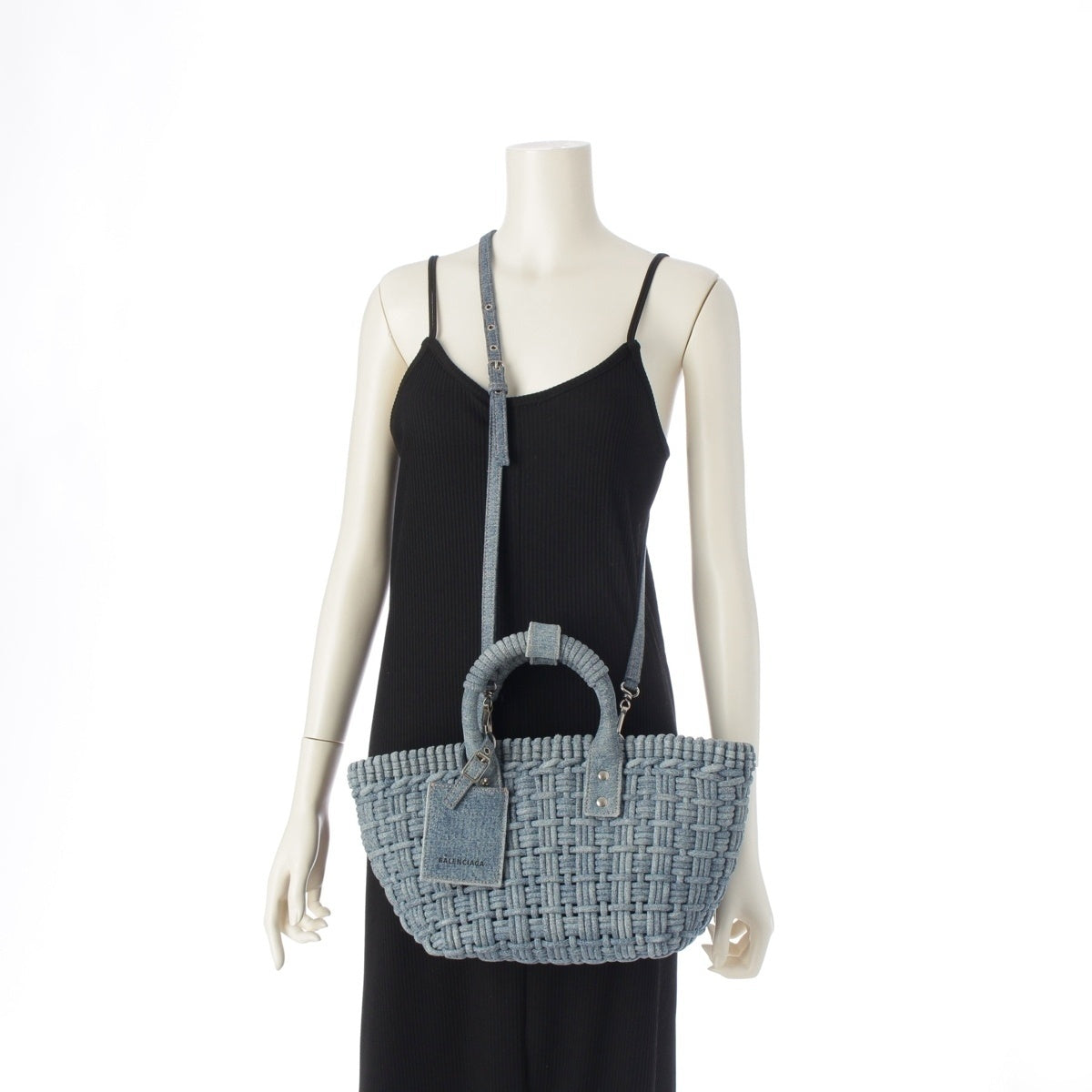 BALENCIAGA Bistro XS denim Basket 2WAY Shoulder Handbag 671342 Indigo blue