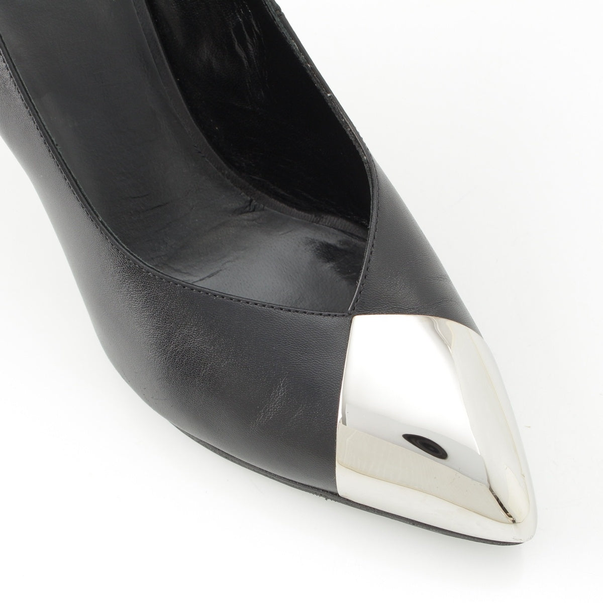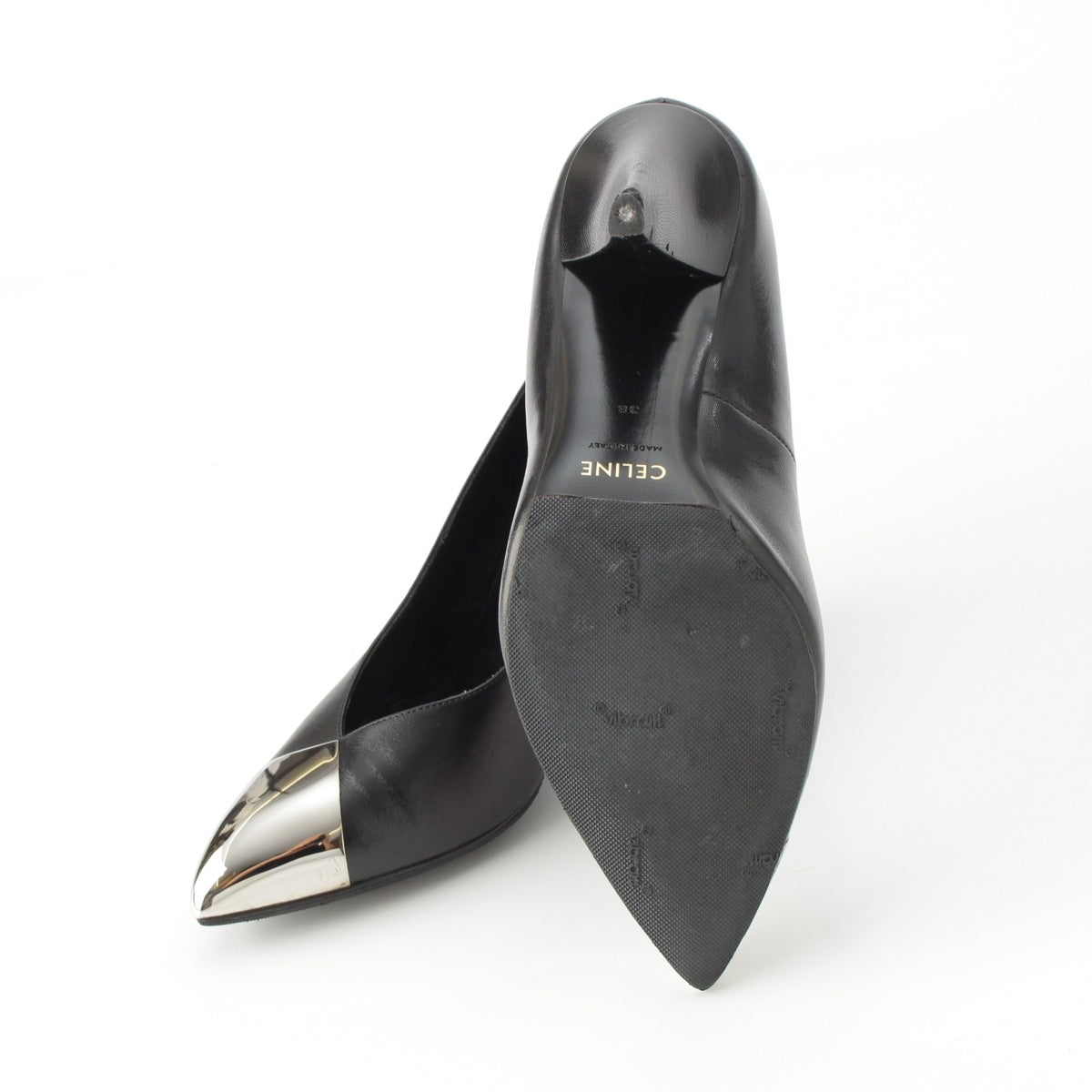 CELINE leather Hedi Slimane V-cut metal almond-toe heels pumps shoes black 38