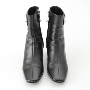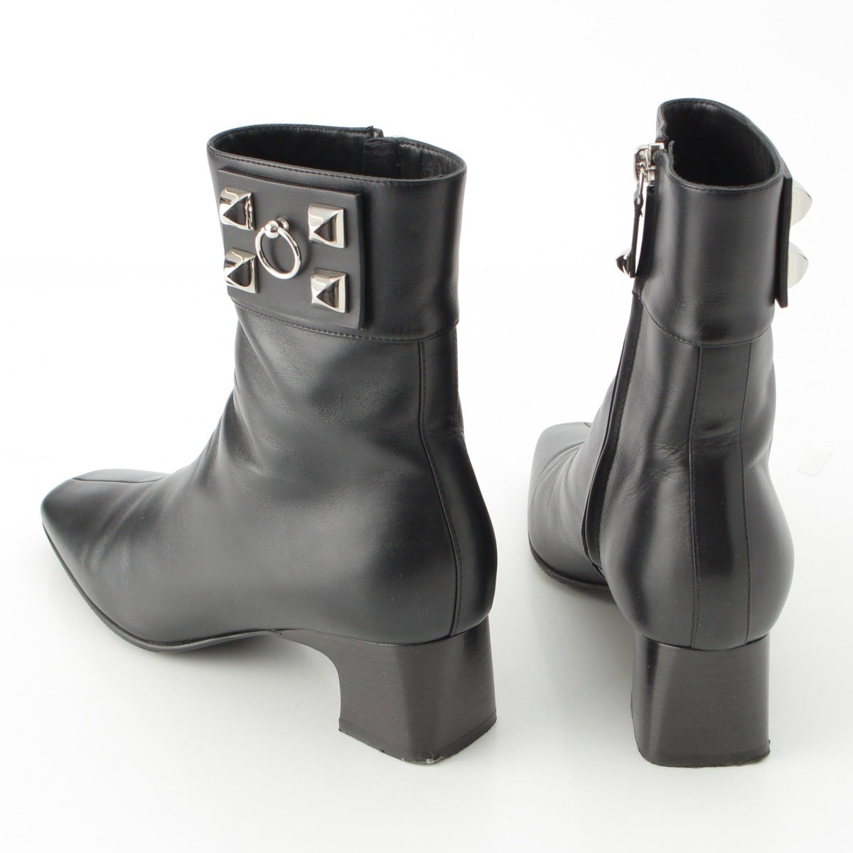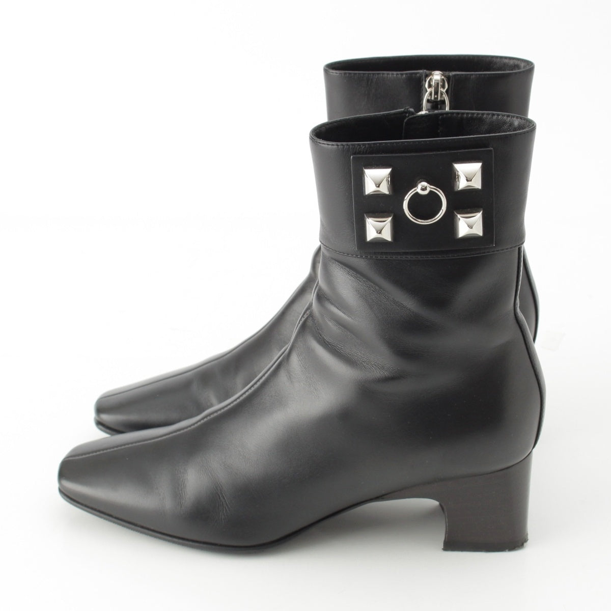 HERMES leather Decubert Collier de Sian Silver Studs boots Ankle Shoes black 36