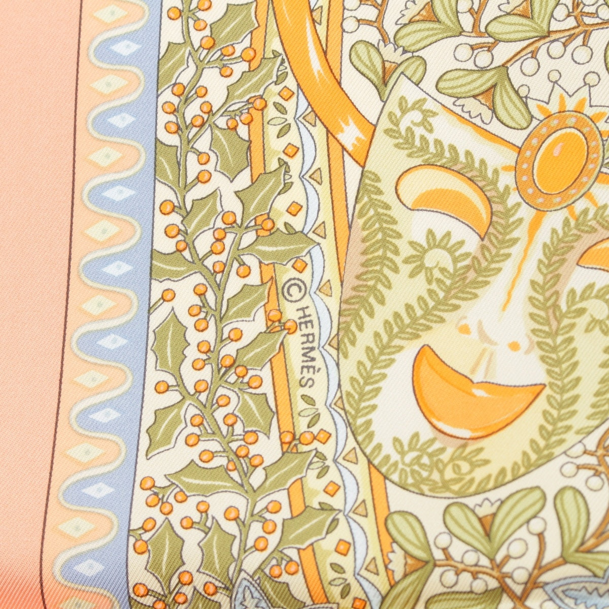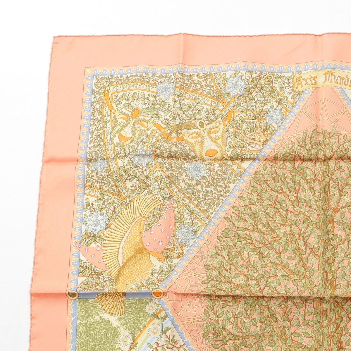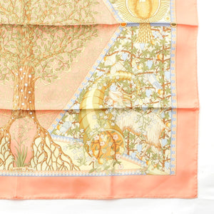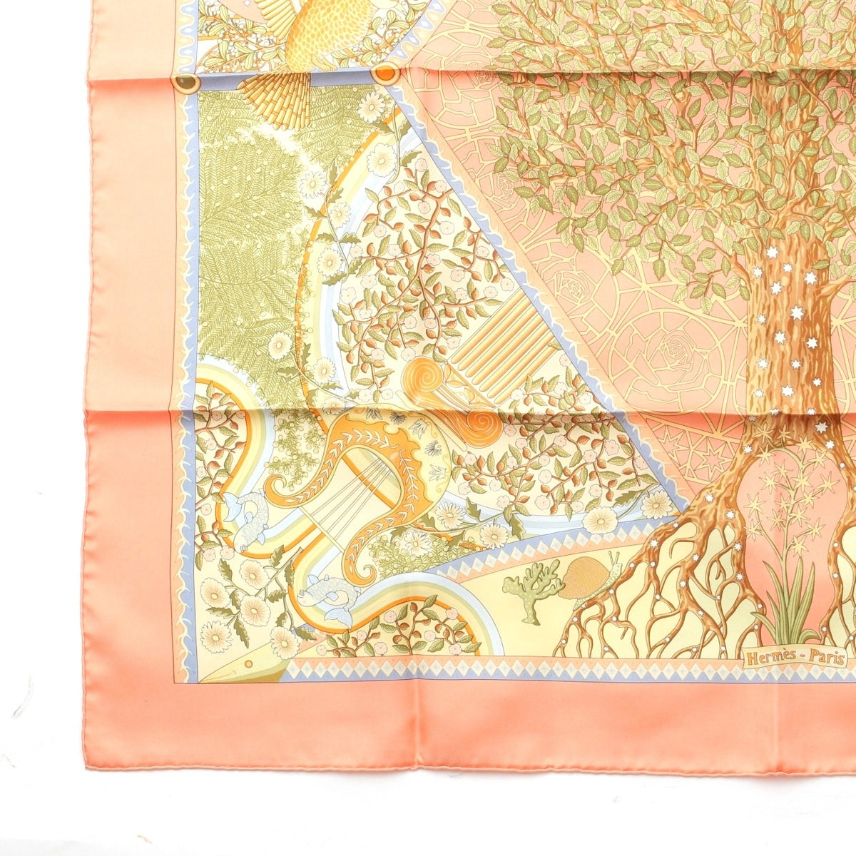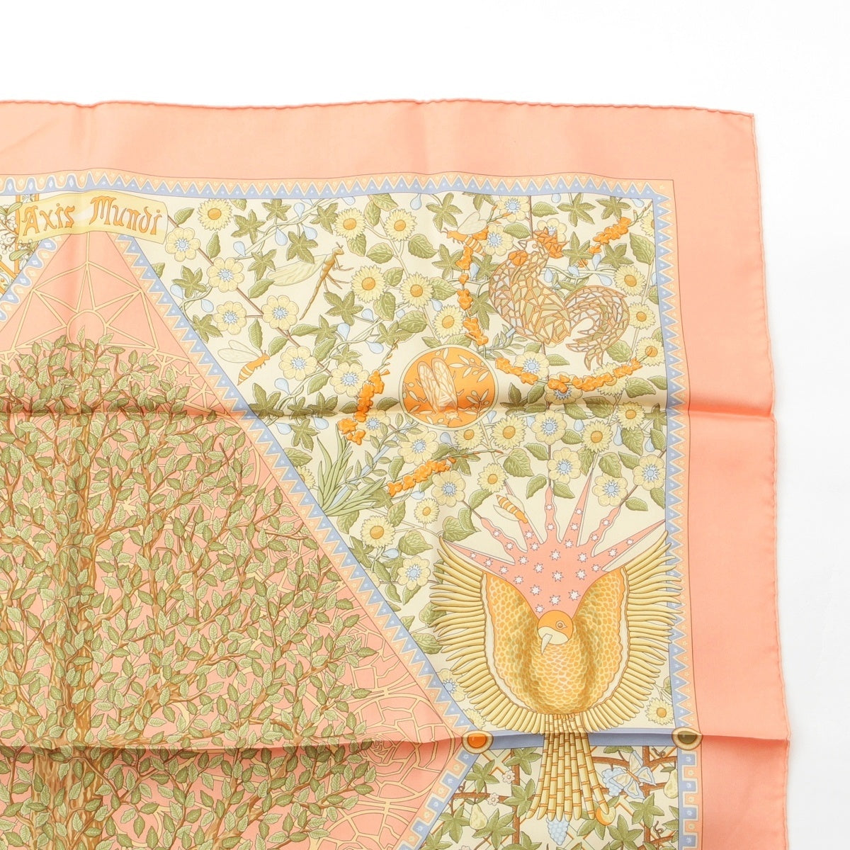 HERMES Calle 90 silk AXIS MUNDI Axis Mundi The central axis of the world Bird Tree scarf Coral