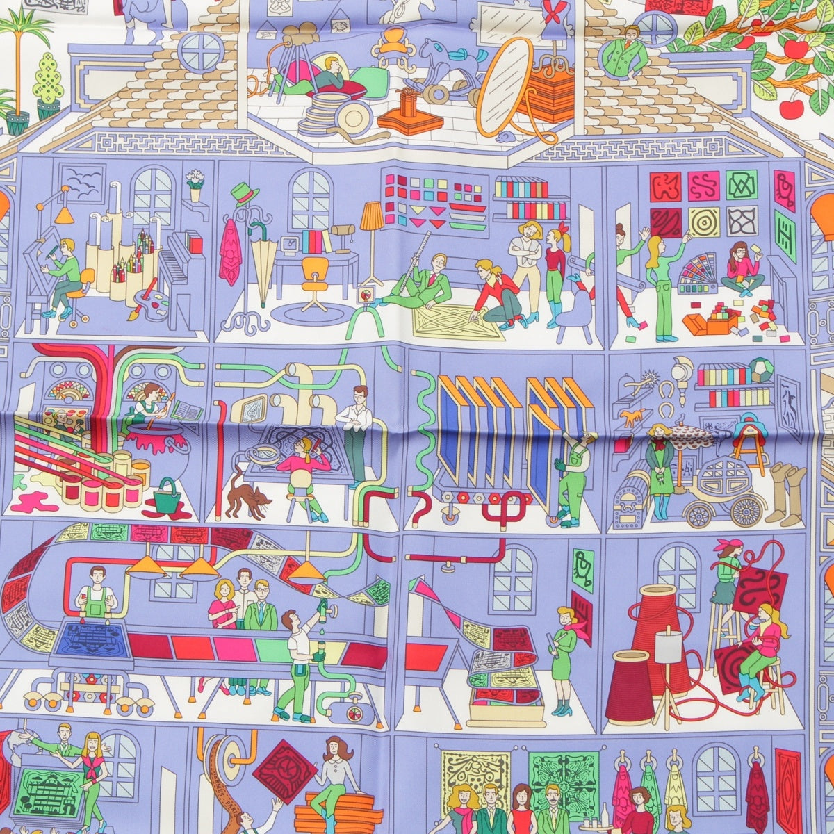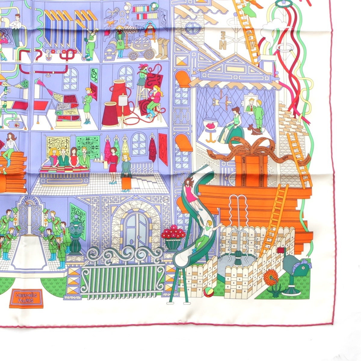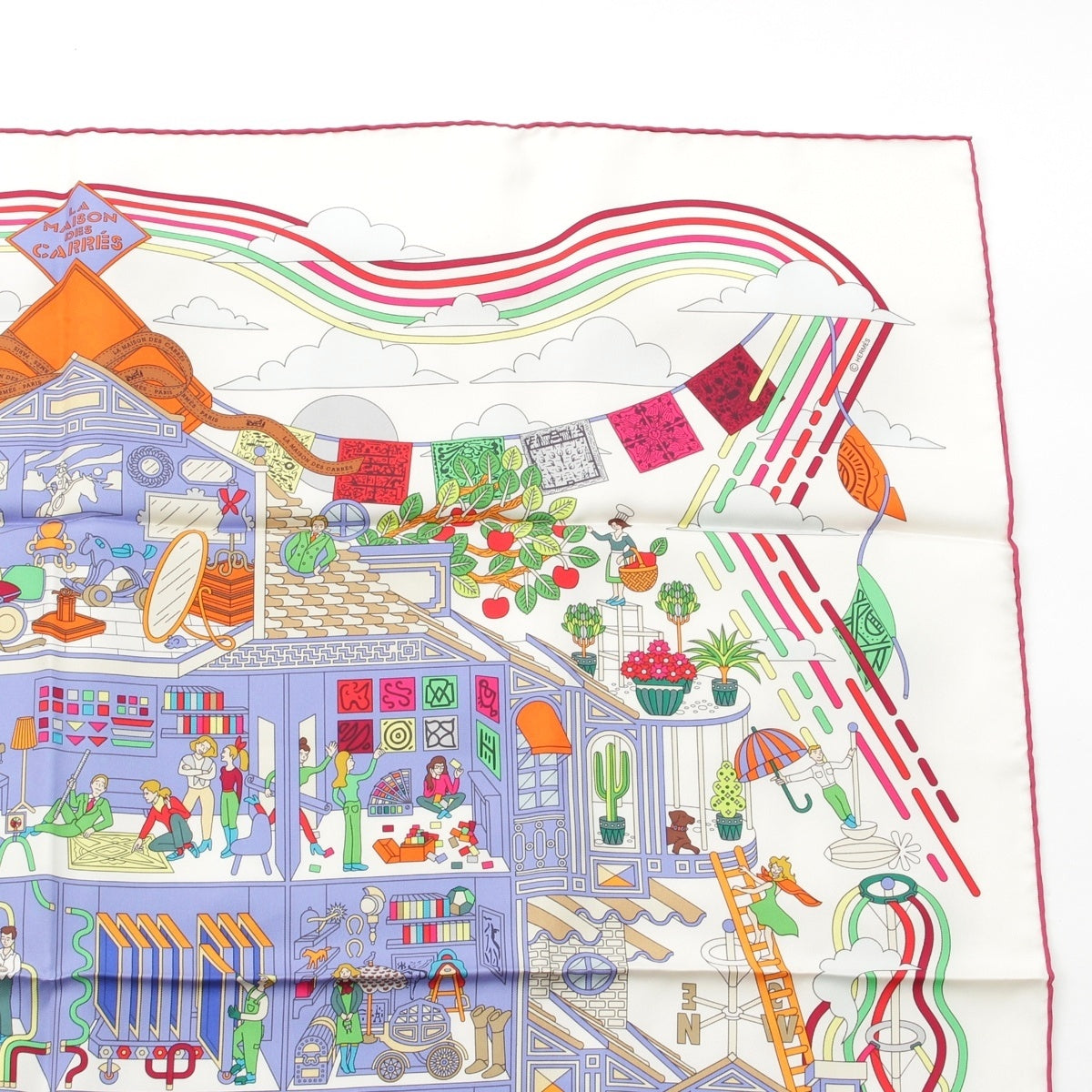 HERMES Calle 90 silk La Maison des Carres scarf multicolor