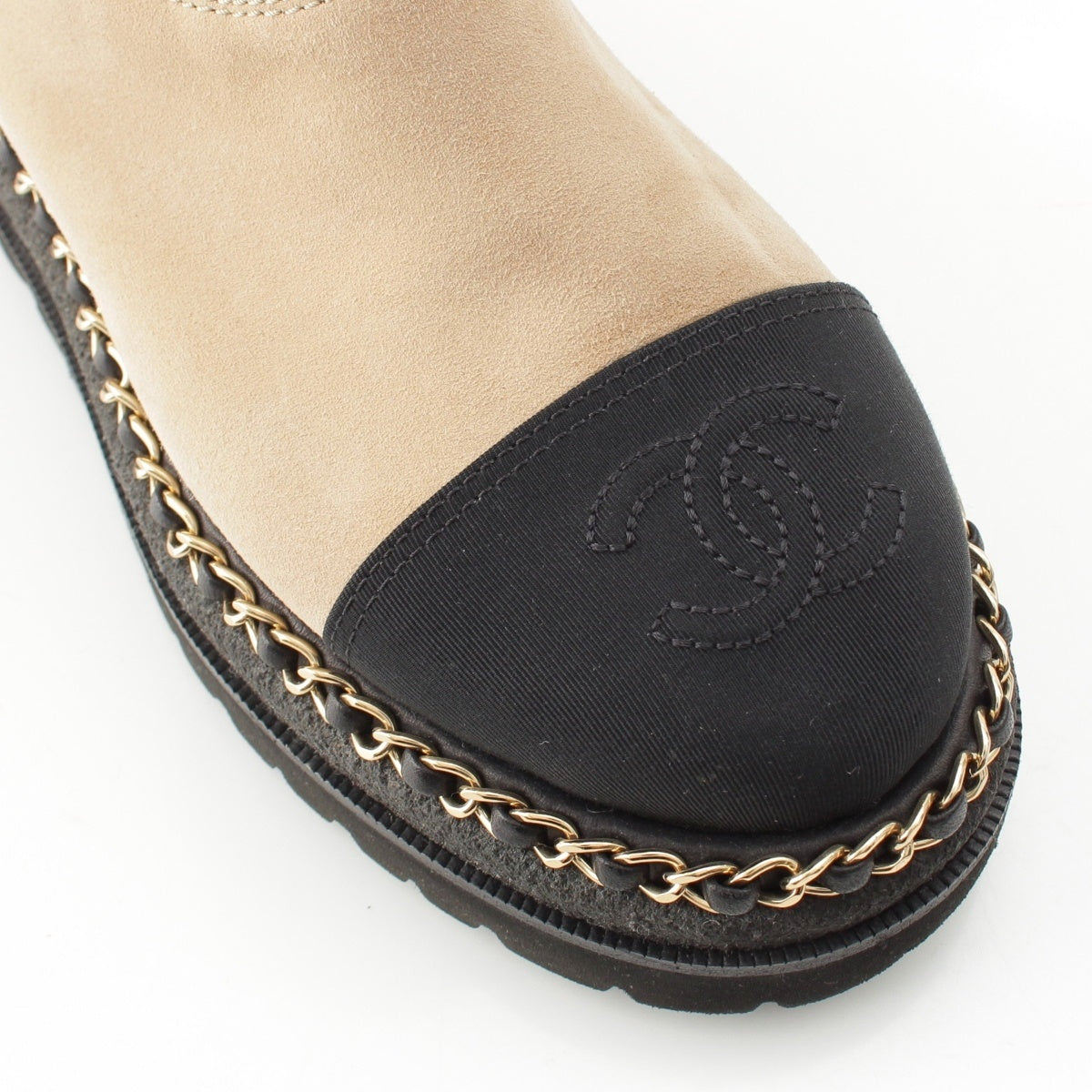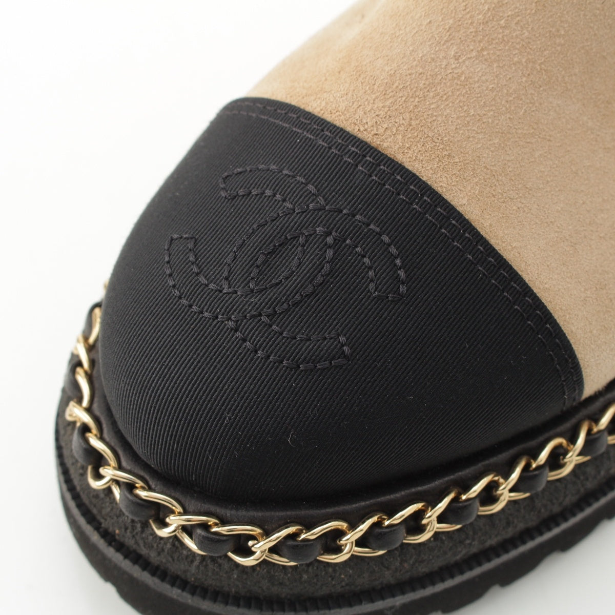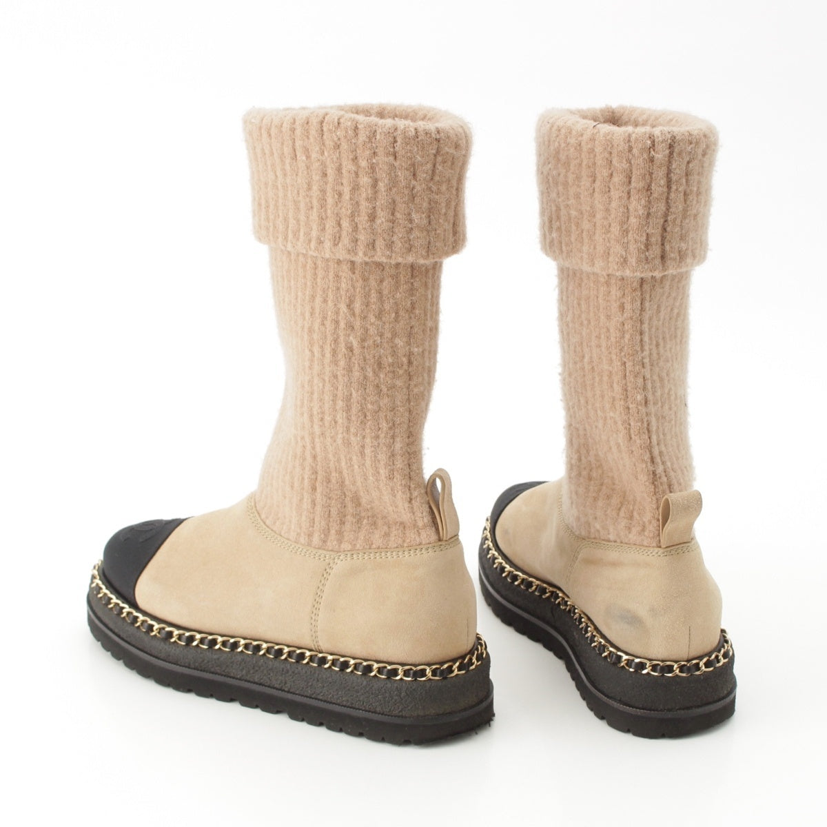 CHANEL suede Knit ankle boots with COCO Mark Chain accents boots G39468 Beige black 36 1/2
