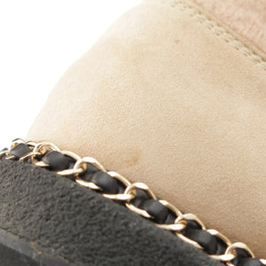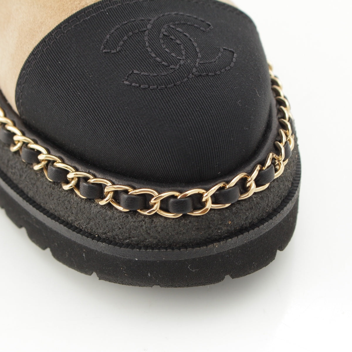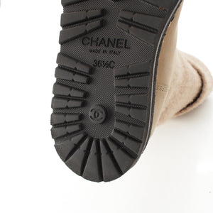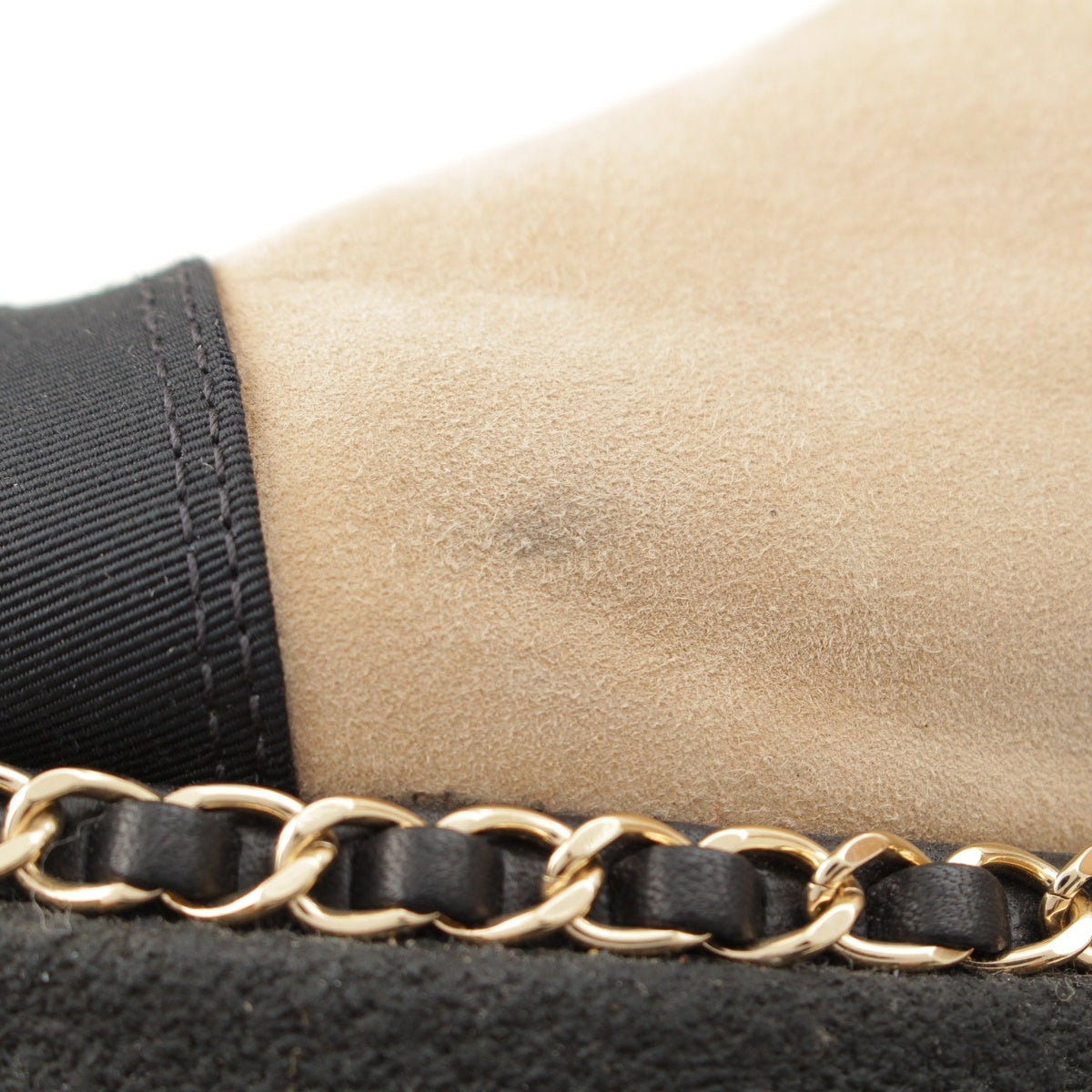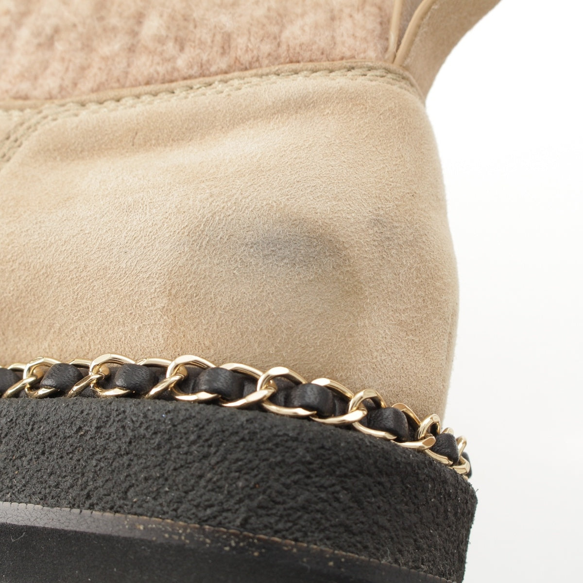 CHANEL suede Knit ankle boots with COCO Mark Chain accents boots G39468 Beige black 36 1/2