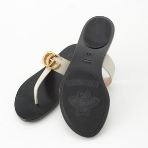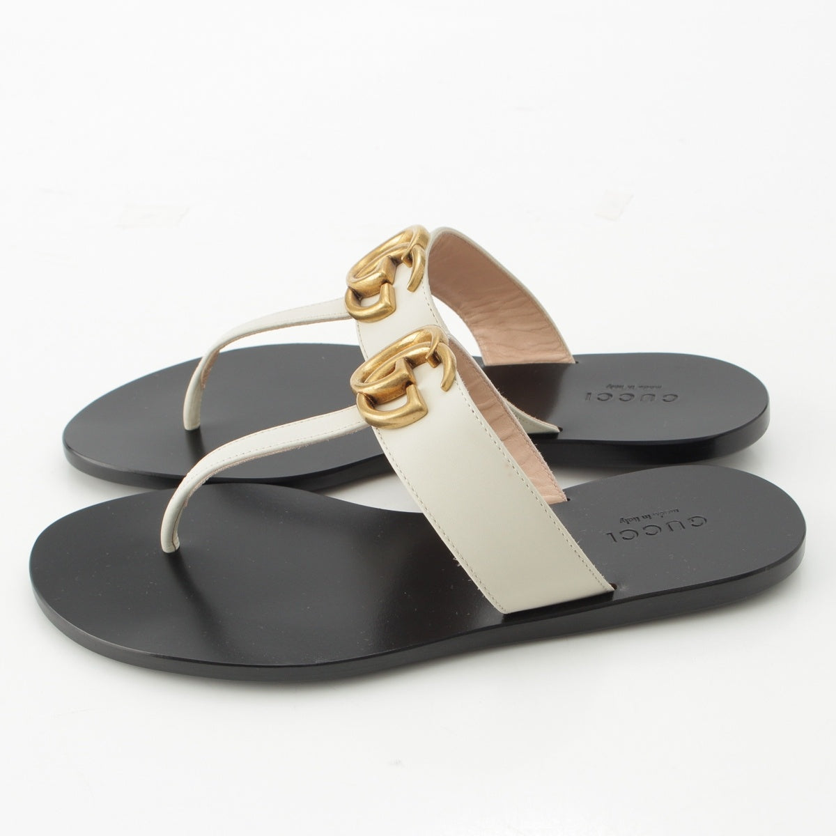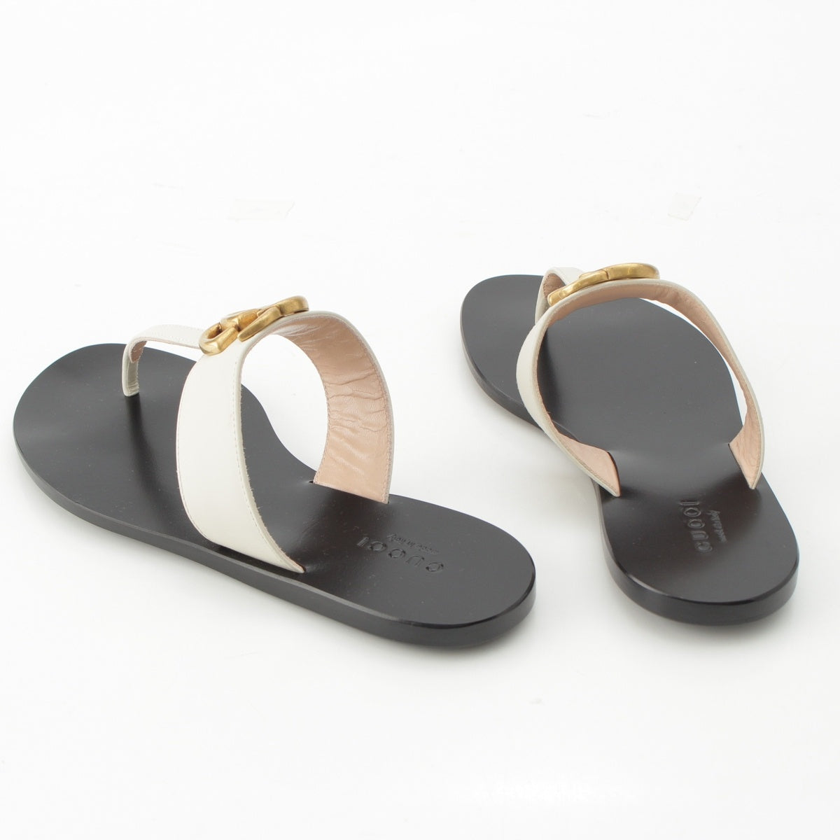 GUCCI leather GG Marmont Sandals 221451 White black 34 1/2