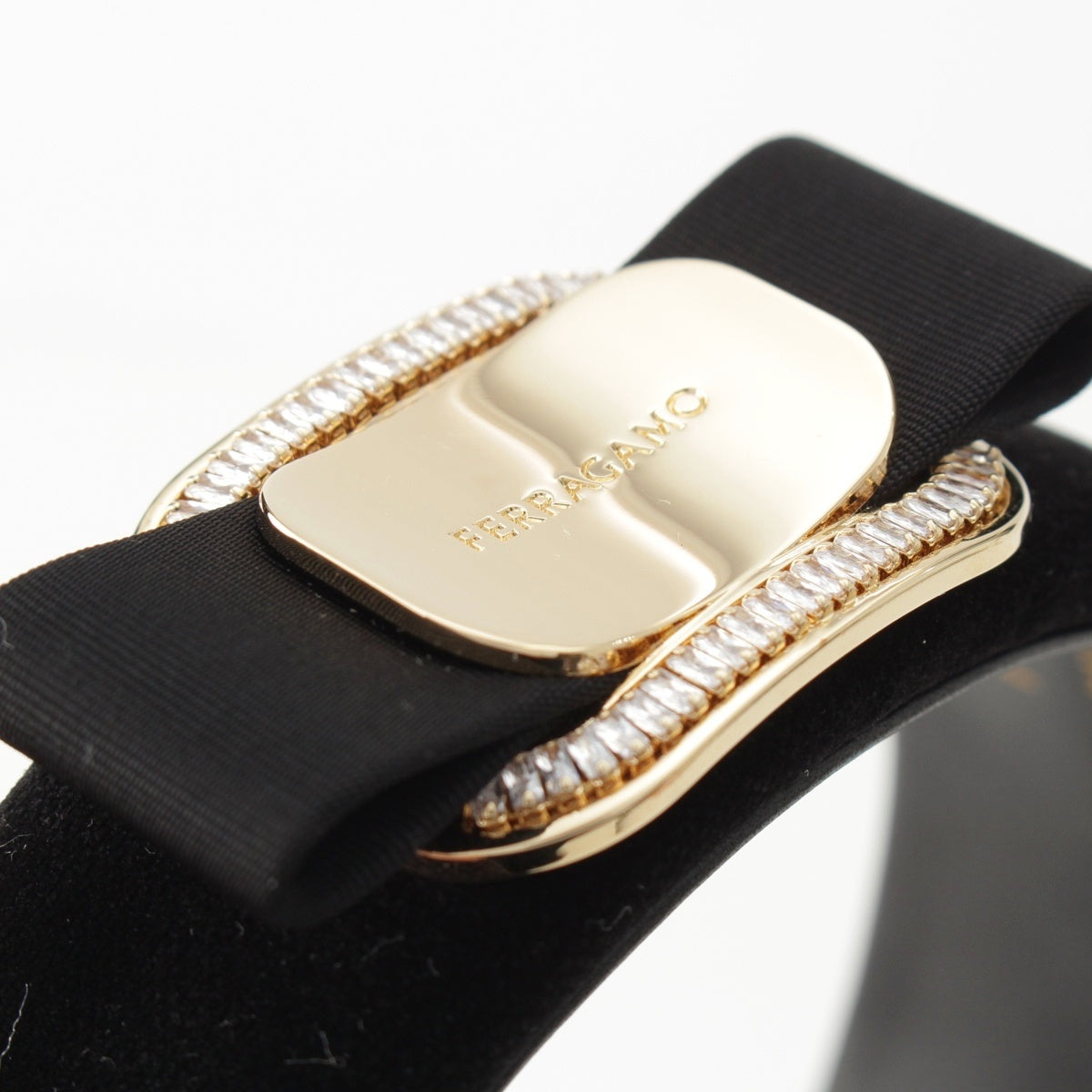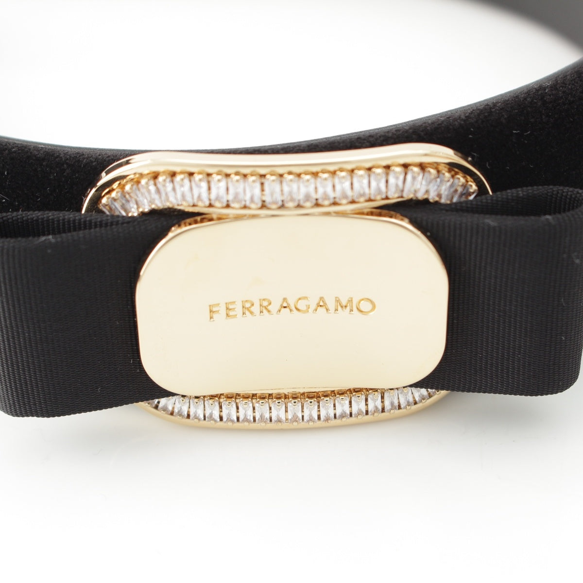 Salvatore Ferragamo Vala Velor Ribbon Rhinestone Headband hair accessory black