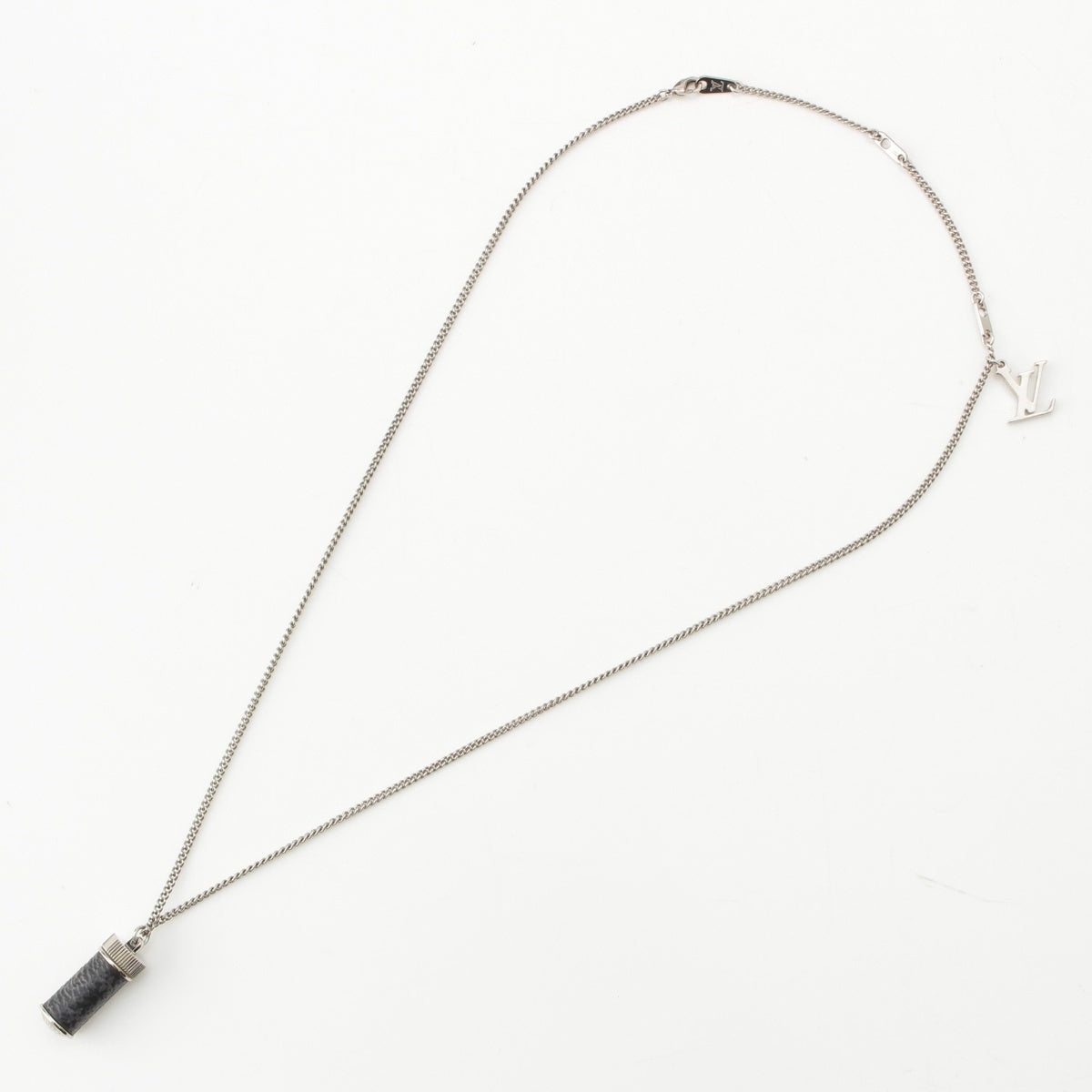 LOUIS VUITTON Monogram Eclipse Collier Charm Necklace Accessories M63641 Silver