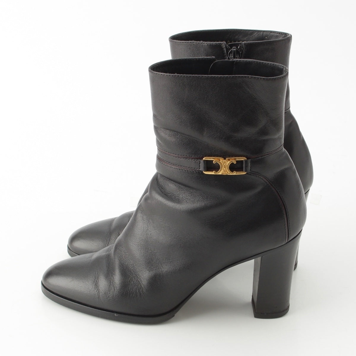 CELINE leather Triomphe Short boots shoes black 37