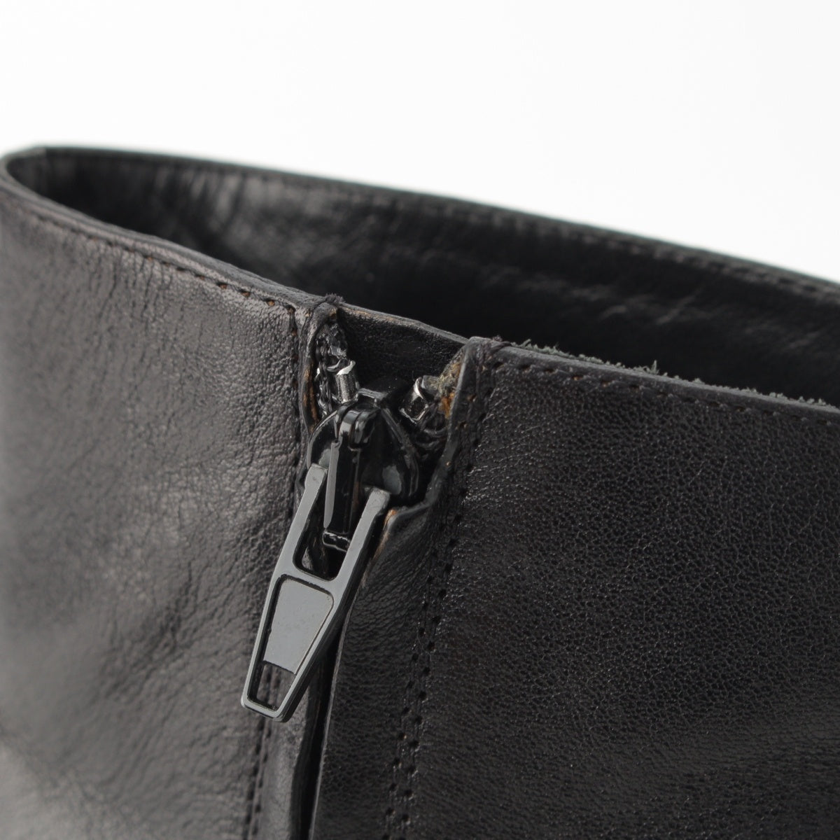 onOutsole, heelStain,scrub,Scar,Wear and tear,Lining、onToe, upper, shaftscrub,Wrinkles、onMetalscrub,Scar、onMetal zipper length leather edgescrub,deterioration、