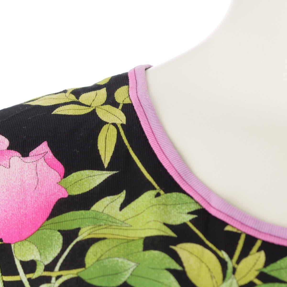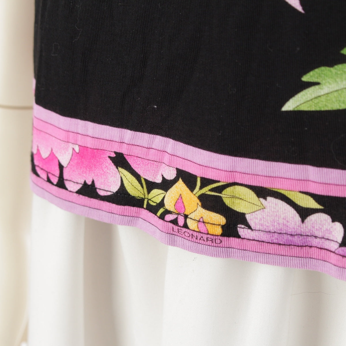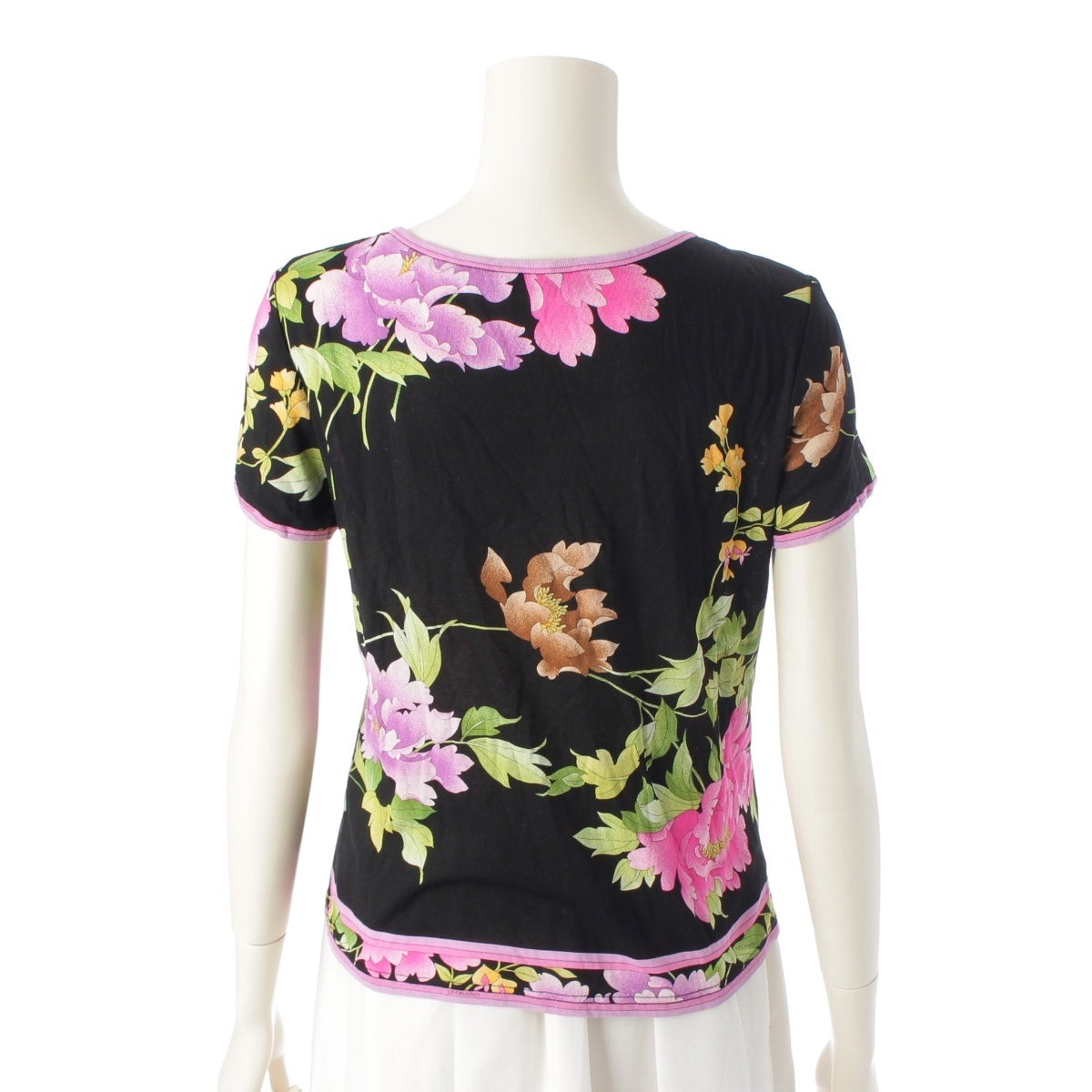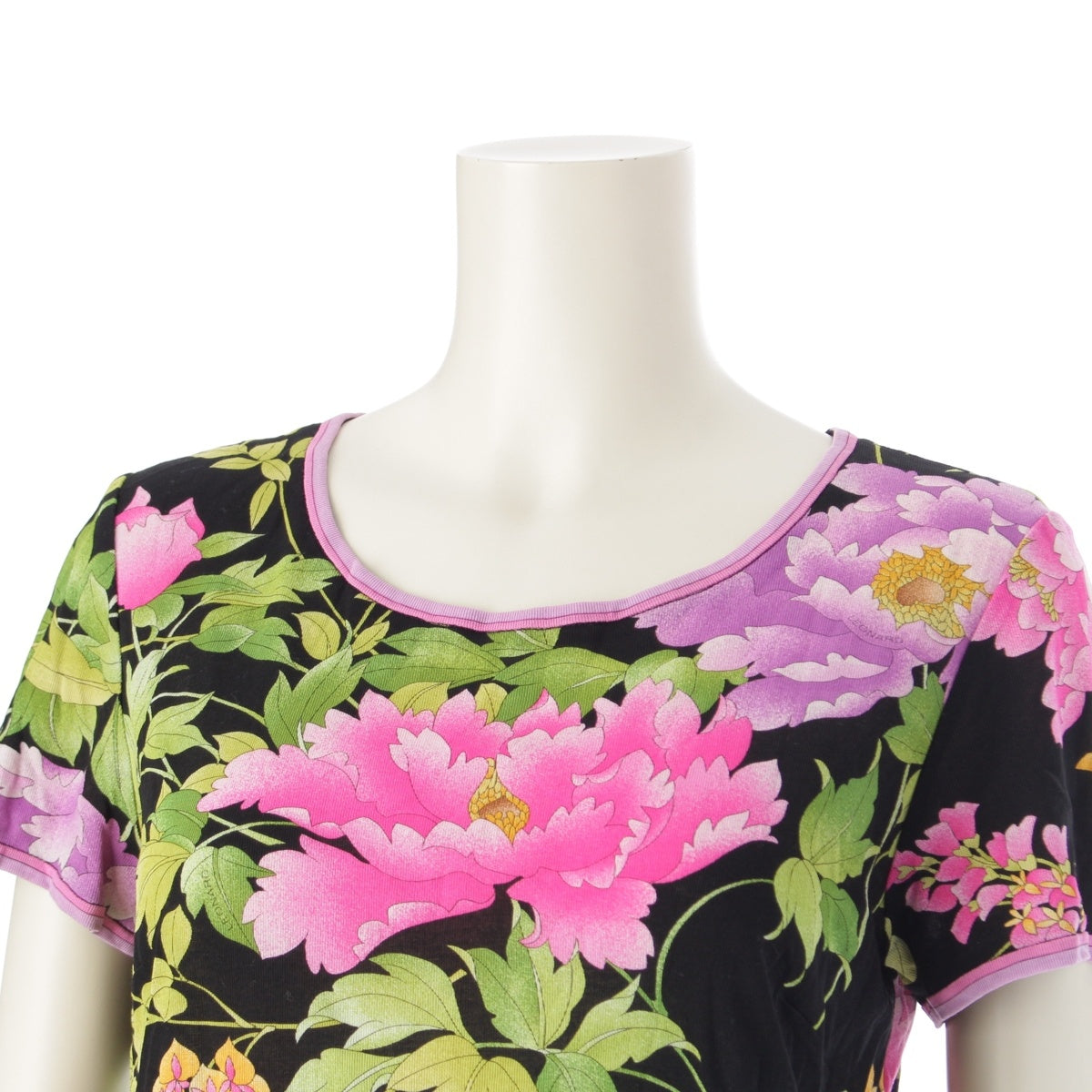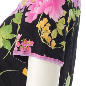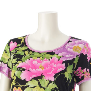 LEONARD fashion cotton Floral Print T-Shirt Cut Short sleeve top 0399216 Black pink L