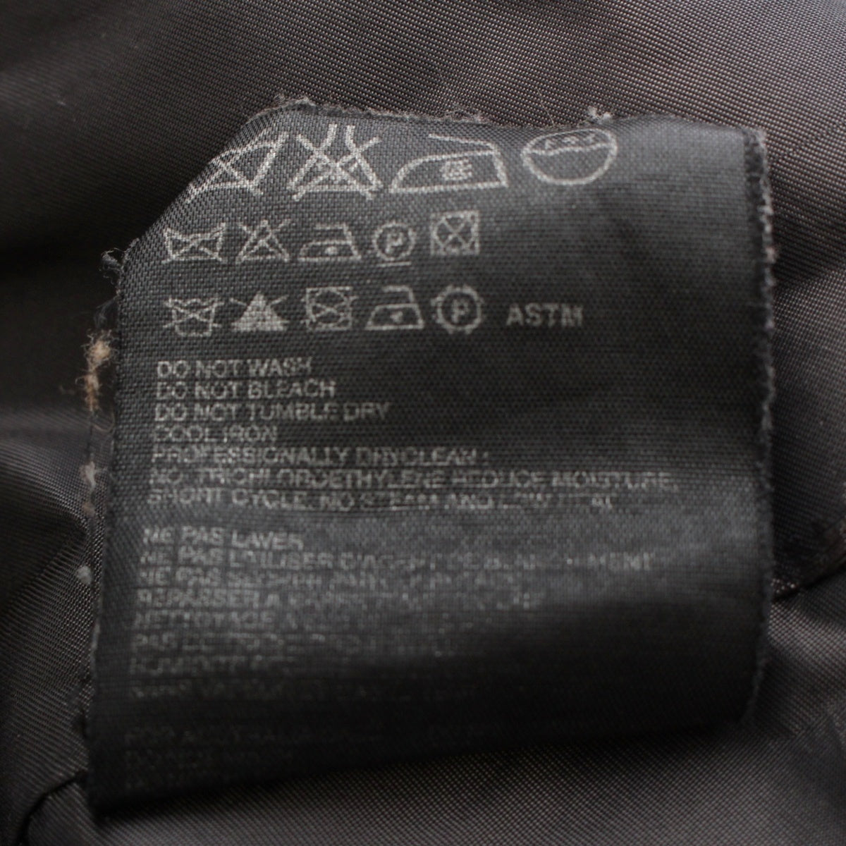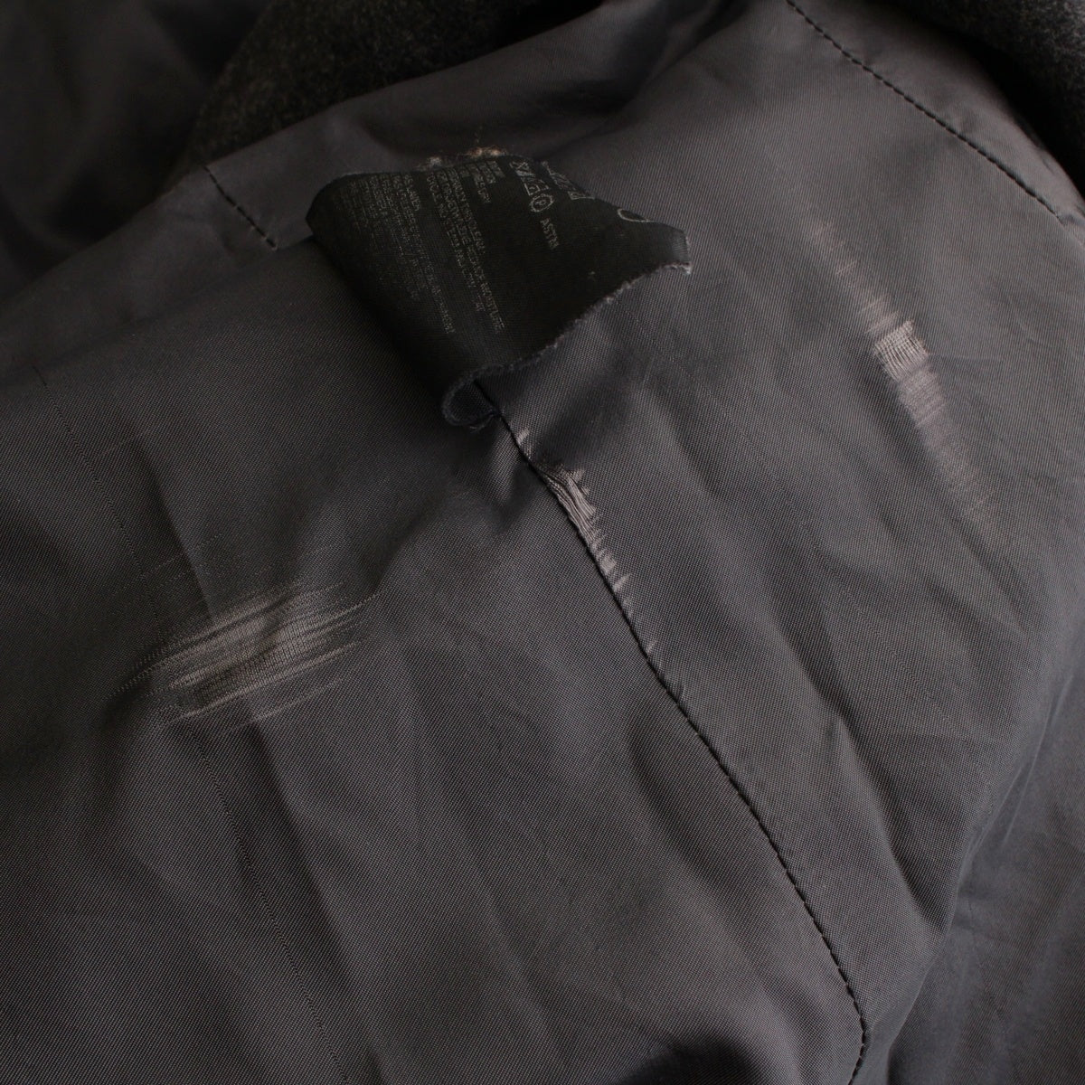 onNeck lining, body liningStain,scrub,Sewing unravel、oncuffscrub、ontagFaded print、