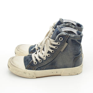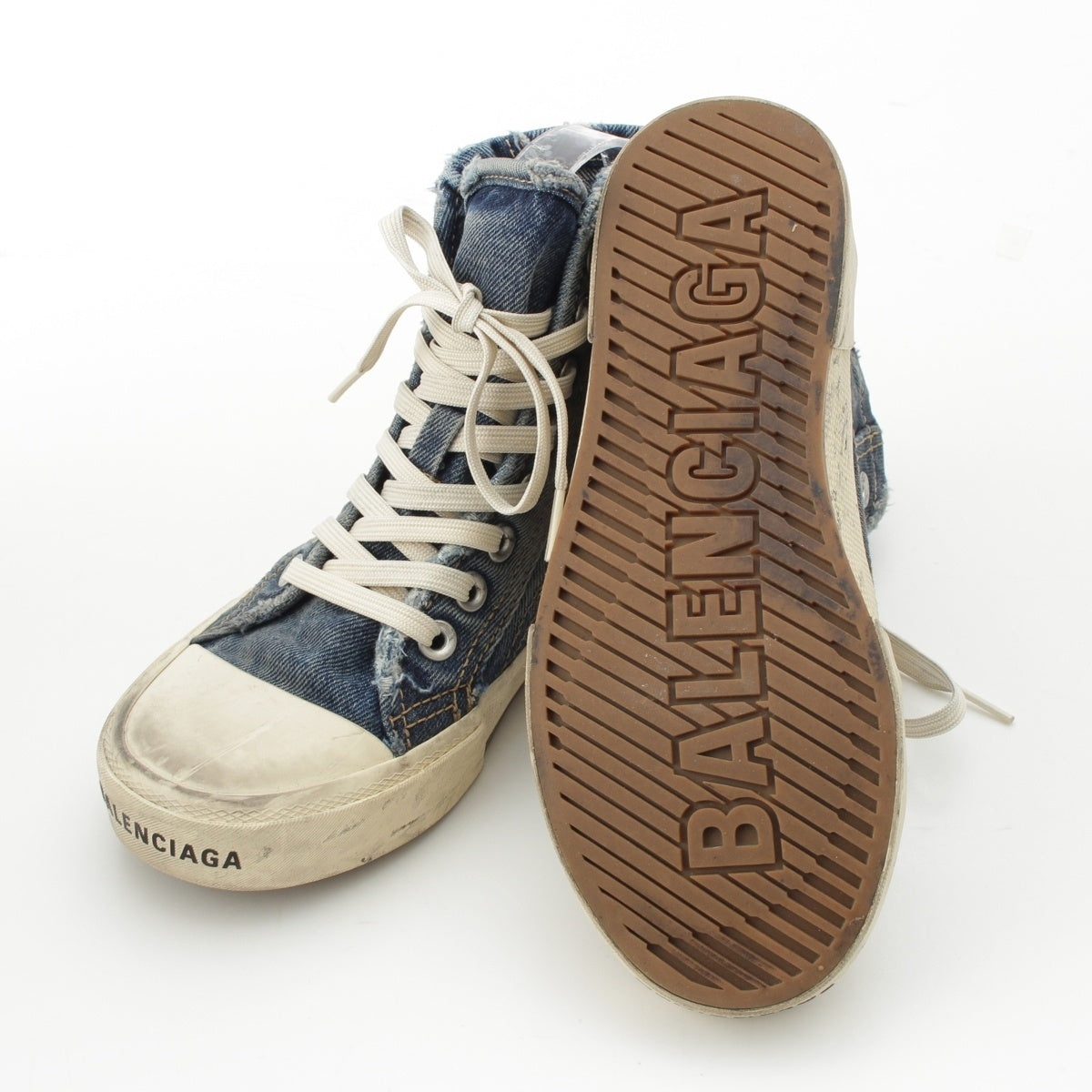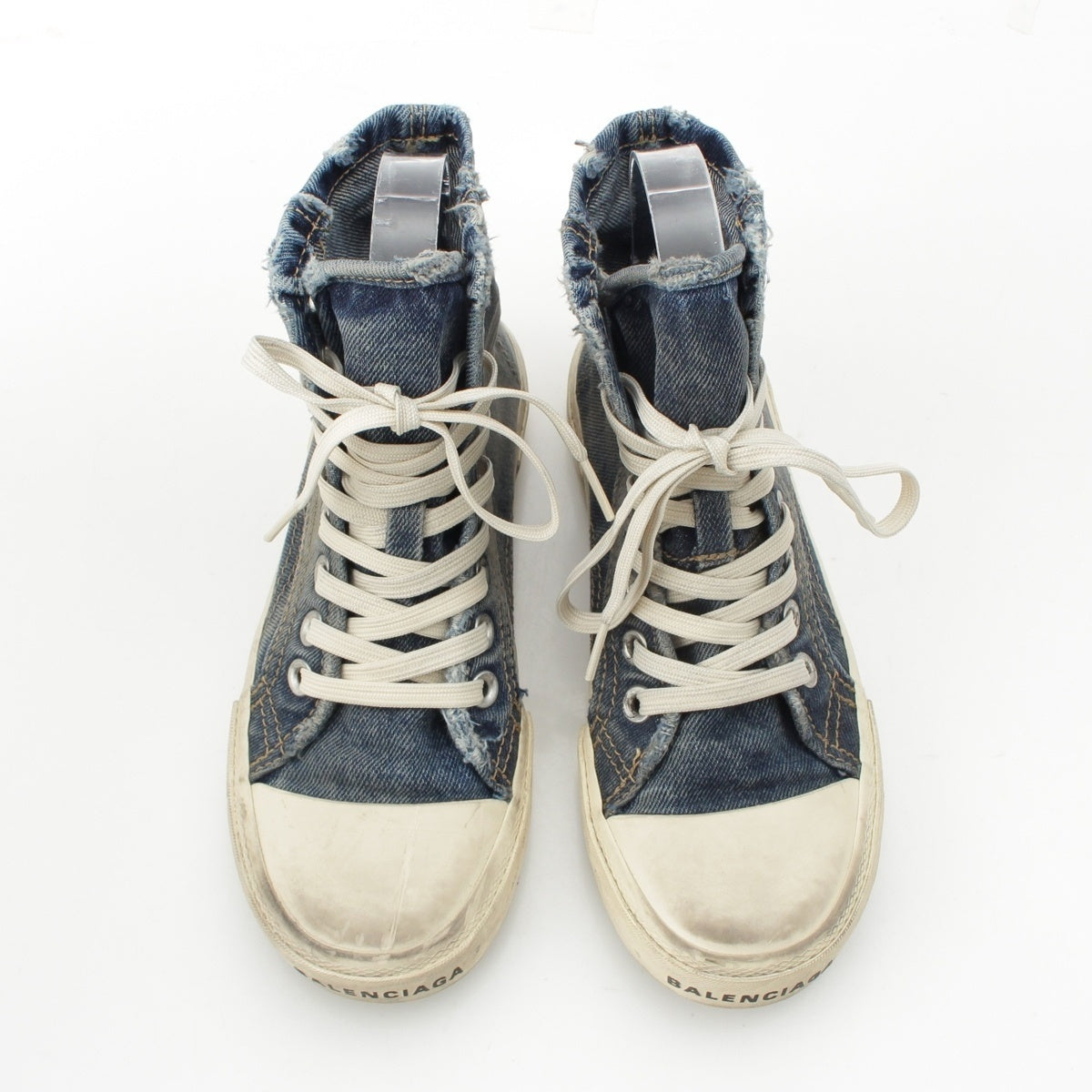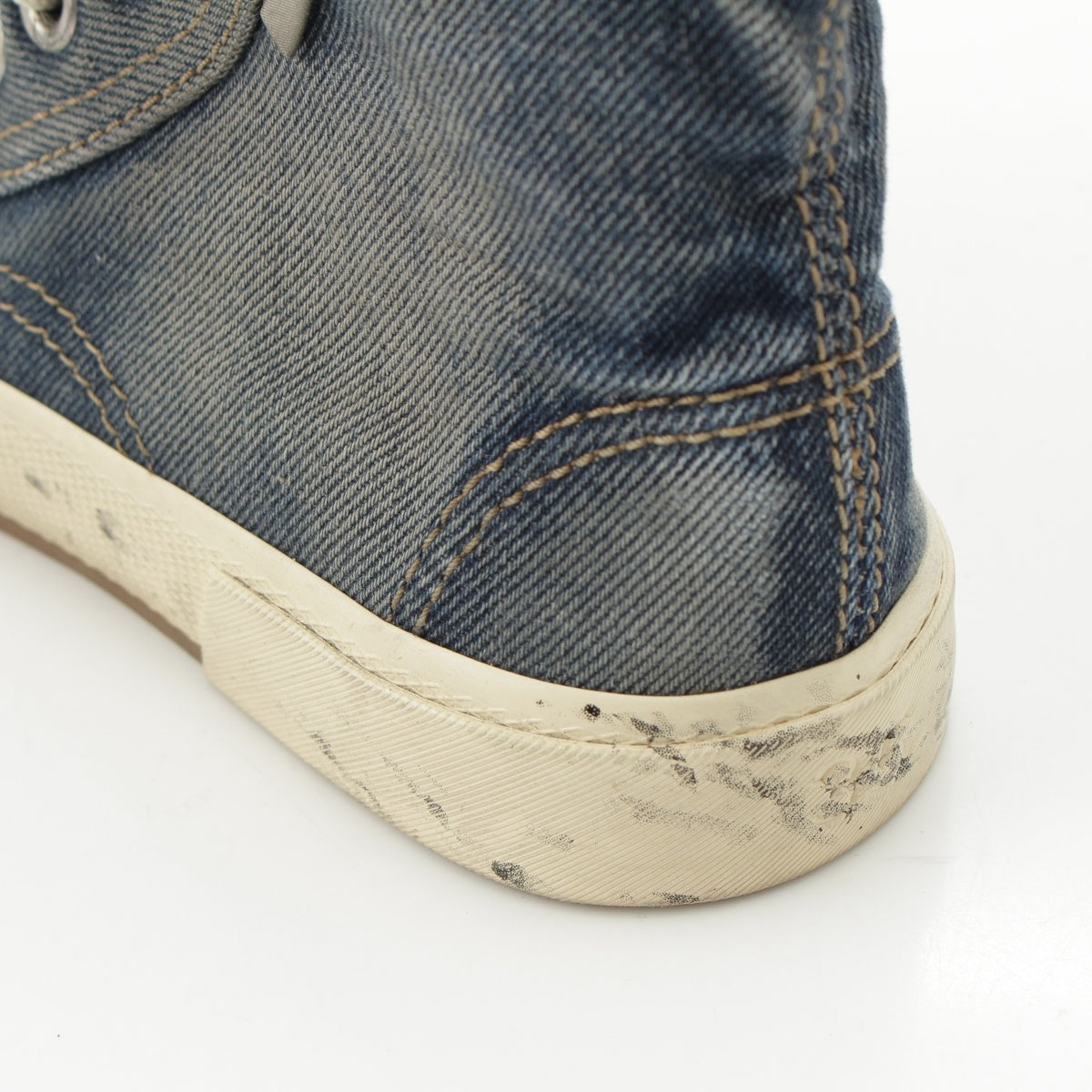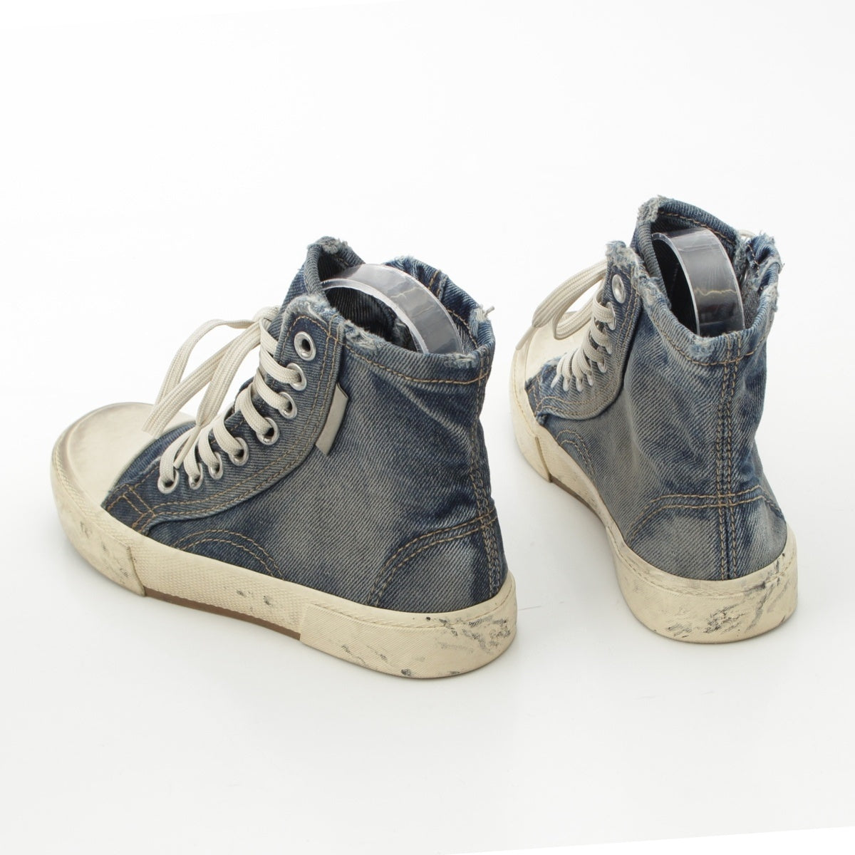 BALENCIAGA Distressed high-top denim sneakers shoes 688756 Indigo white 9.1"
