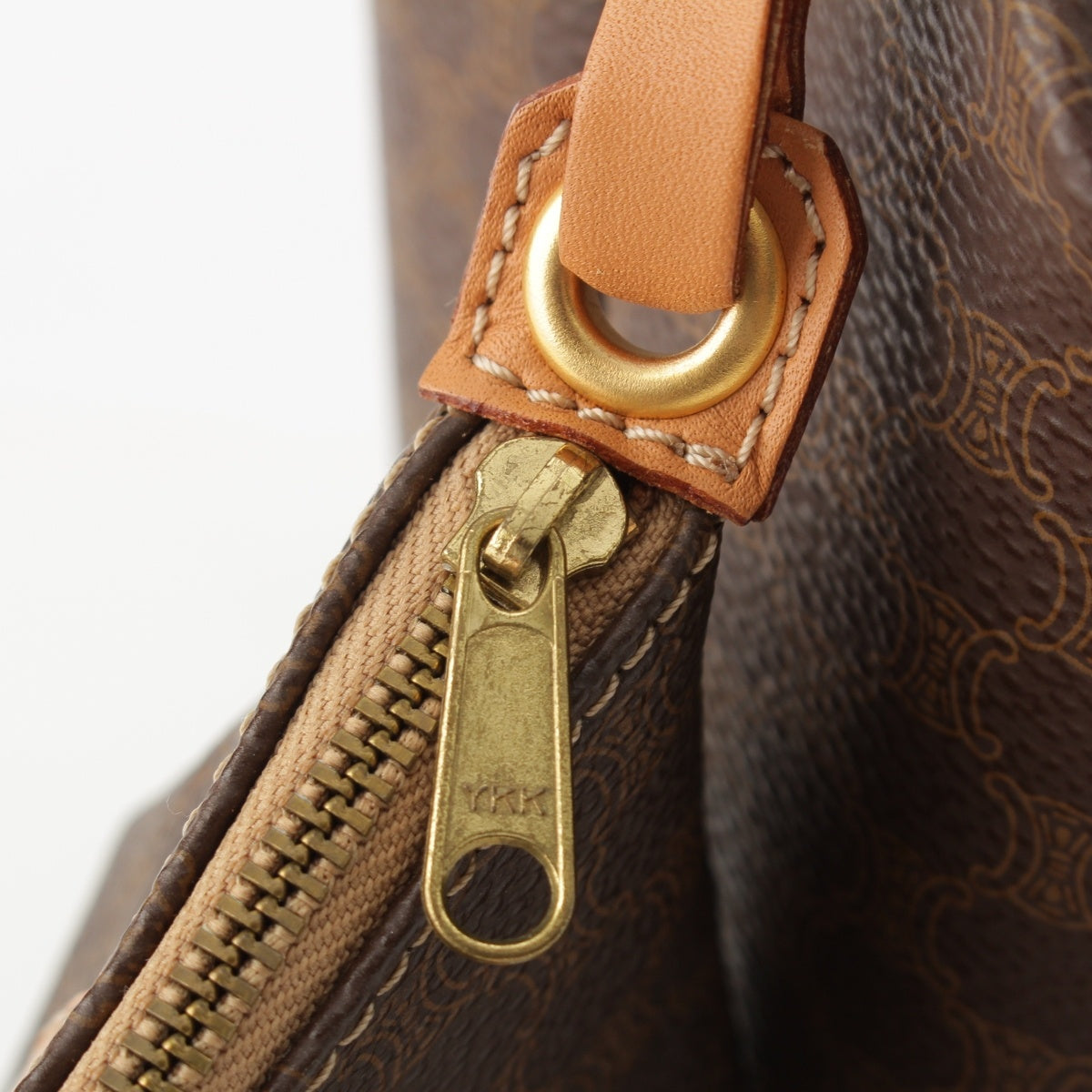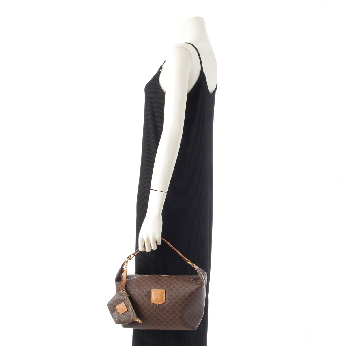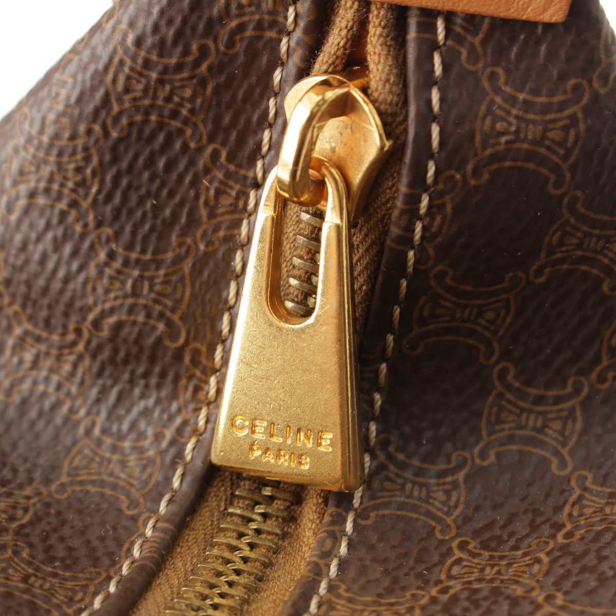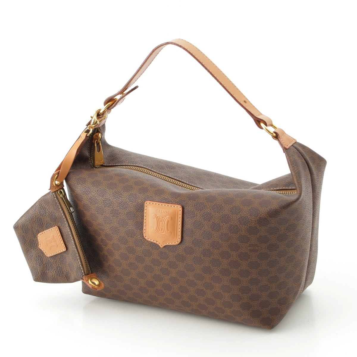 CELINE Vintage Macadam Triomphe Vanity with Pouch Handbag Brown