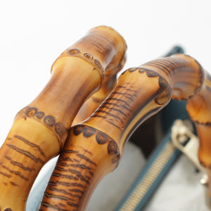 GUCCI leather Logo Bamboo 2WAY Shoulder Bag Handbag 323660 blue