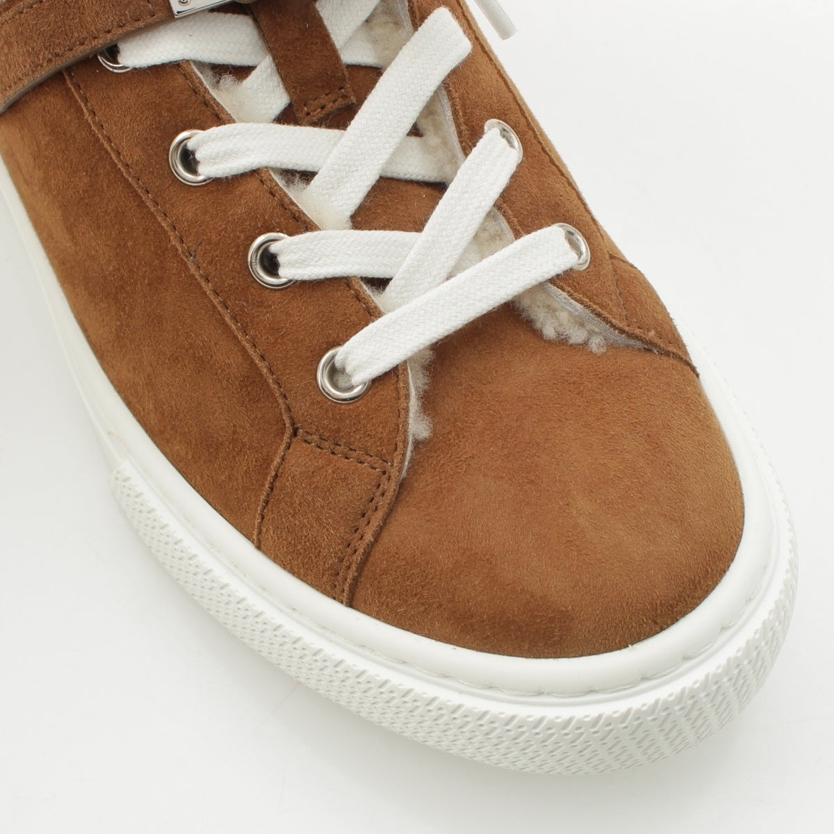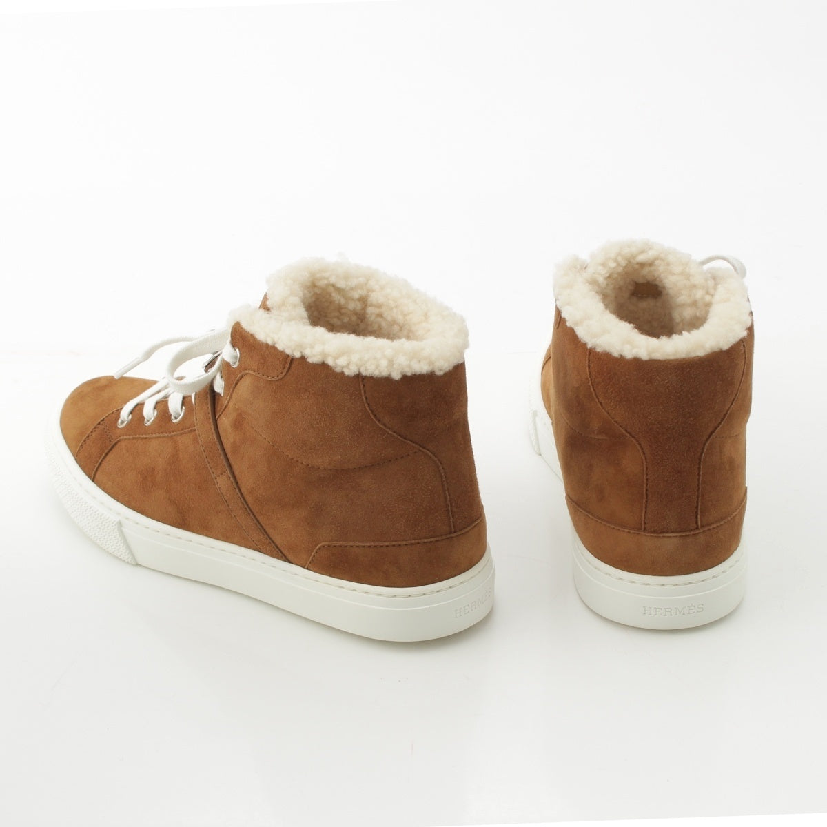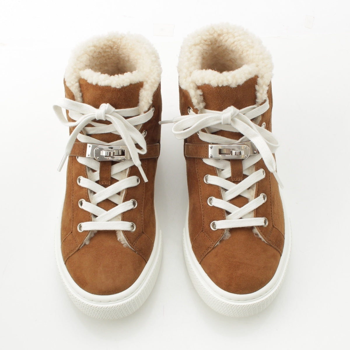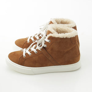 HERMES Suede Kelly Metal Boa Mouton High-top sneakers shoes Brown 37