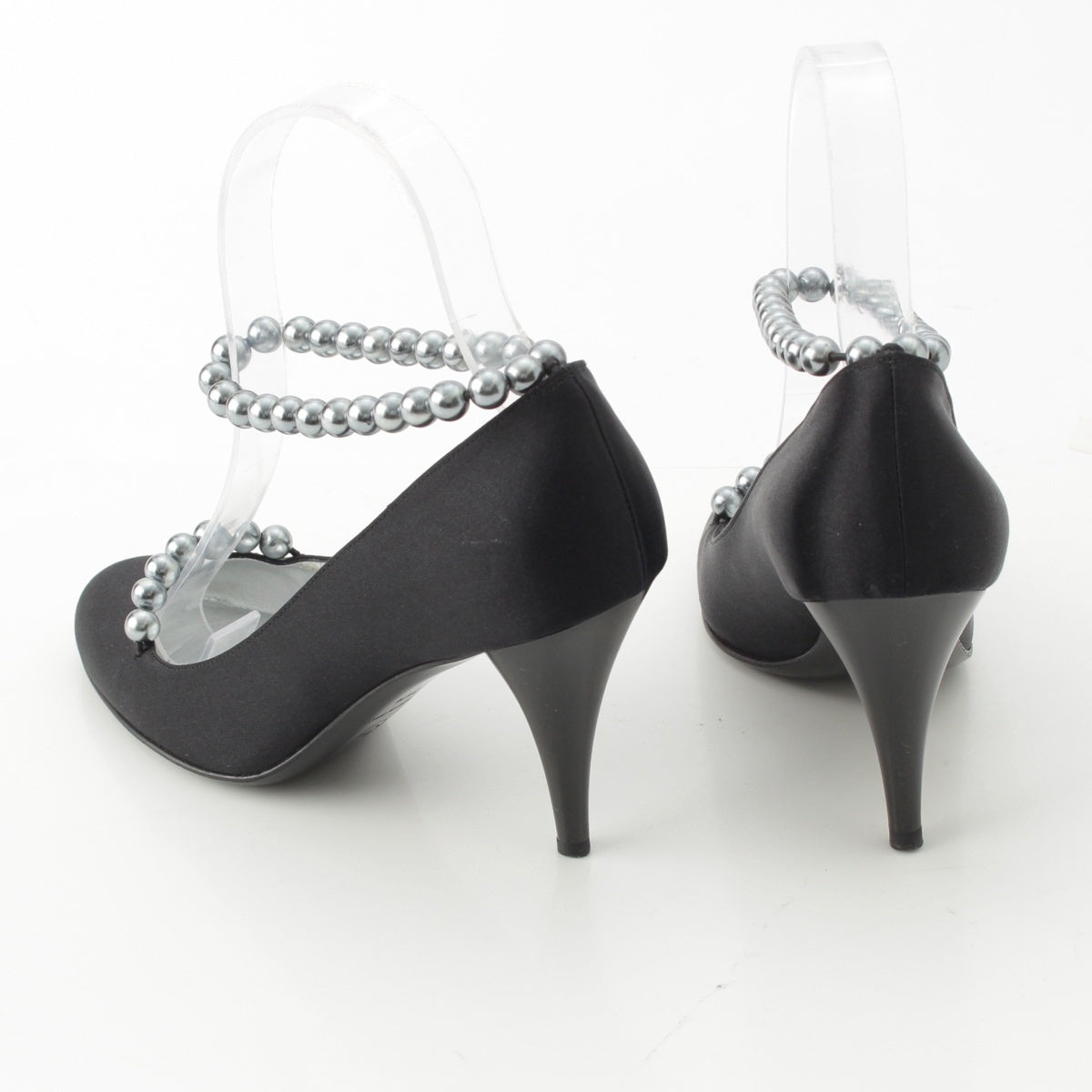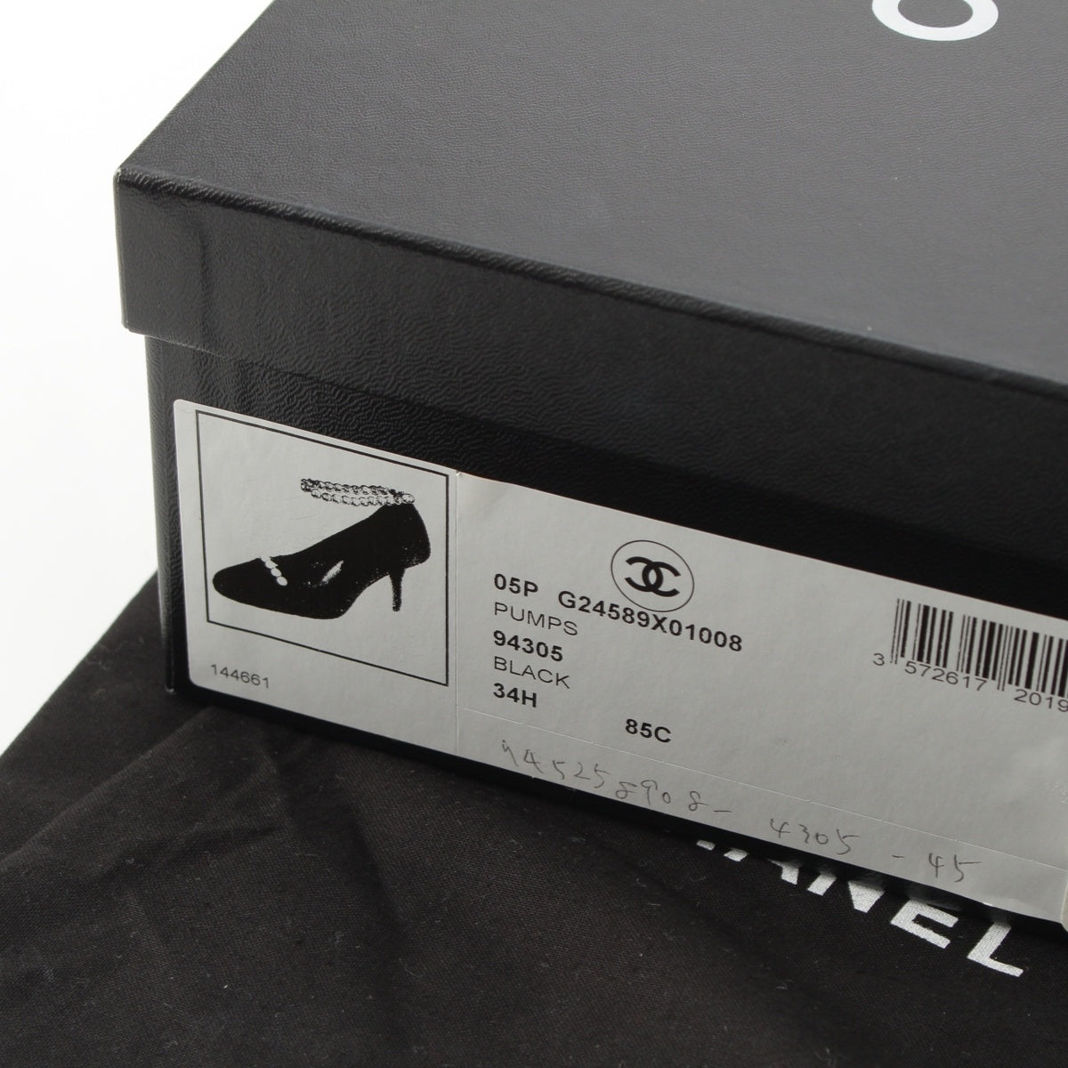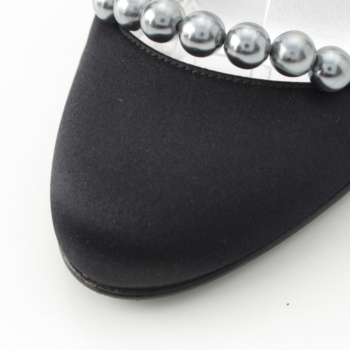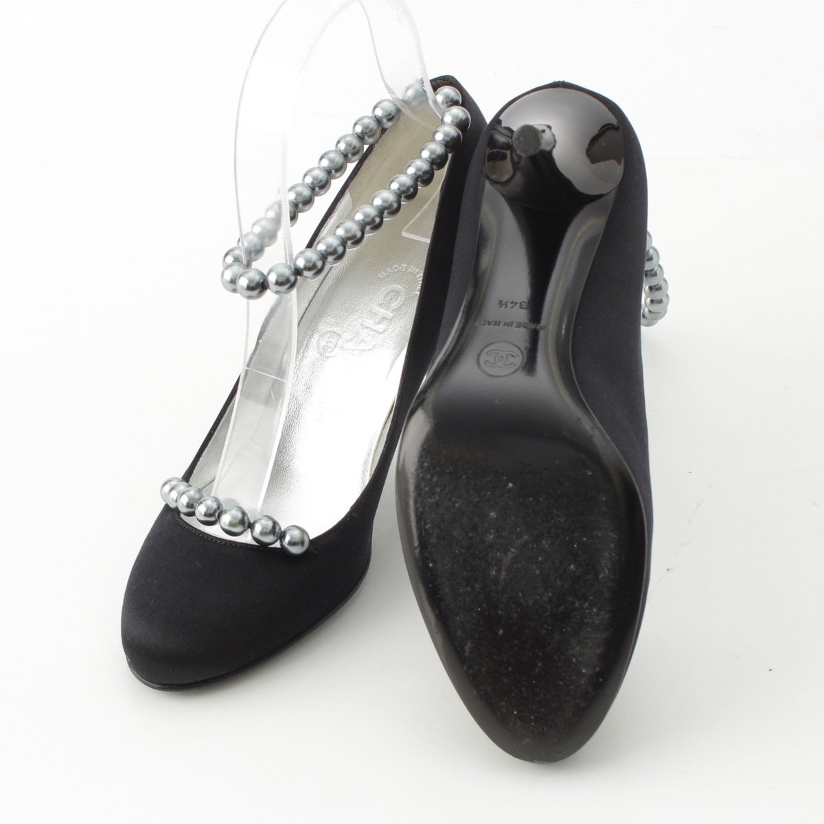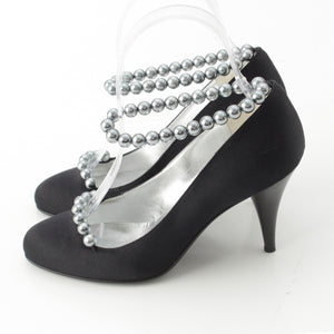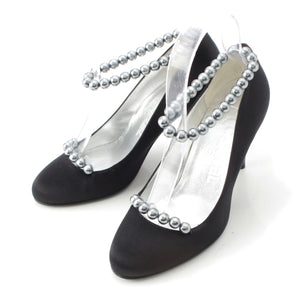 CHANEL Satin 05P Pearl Strap pumps black 34 1/2