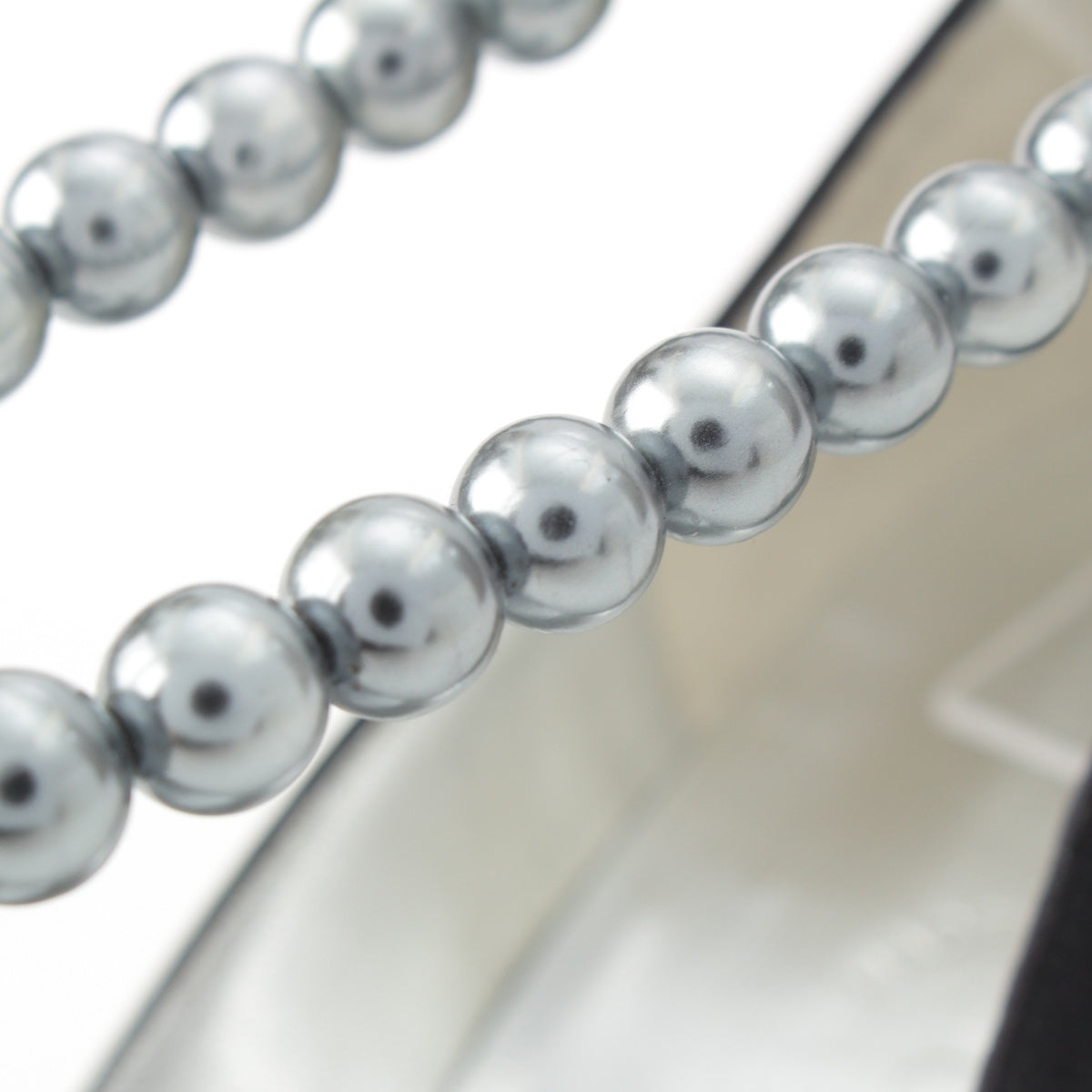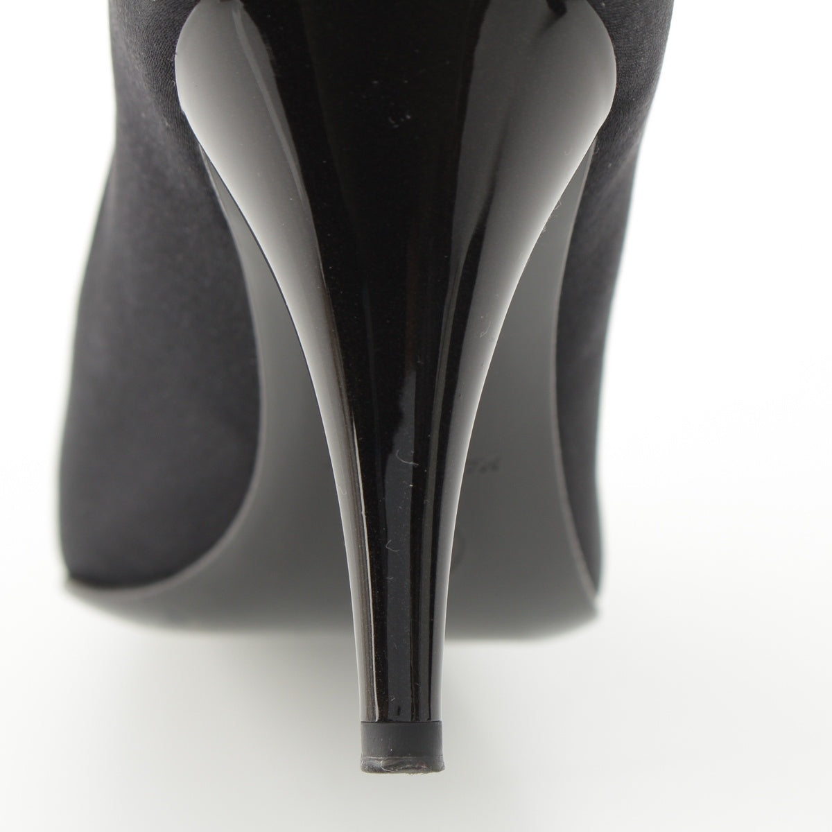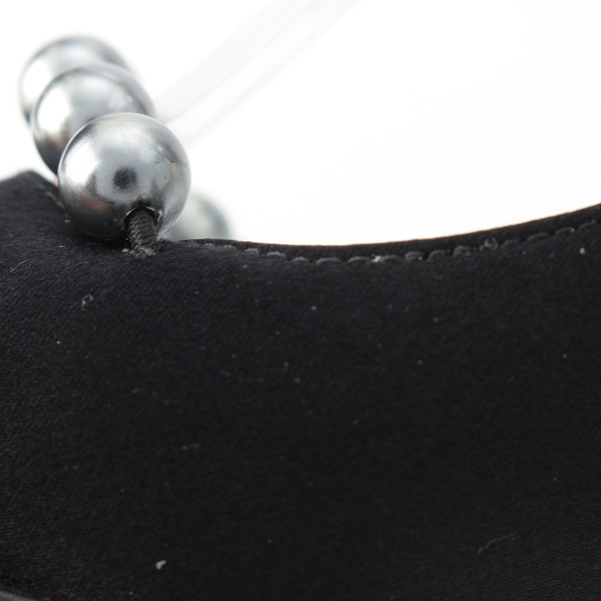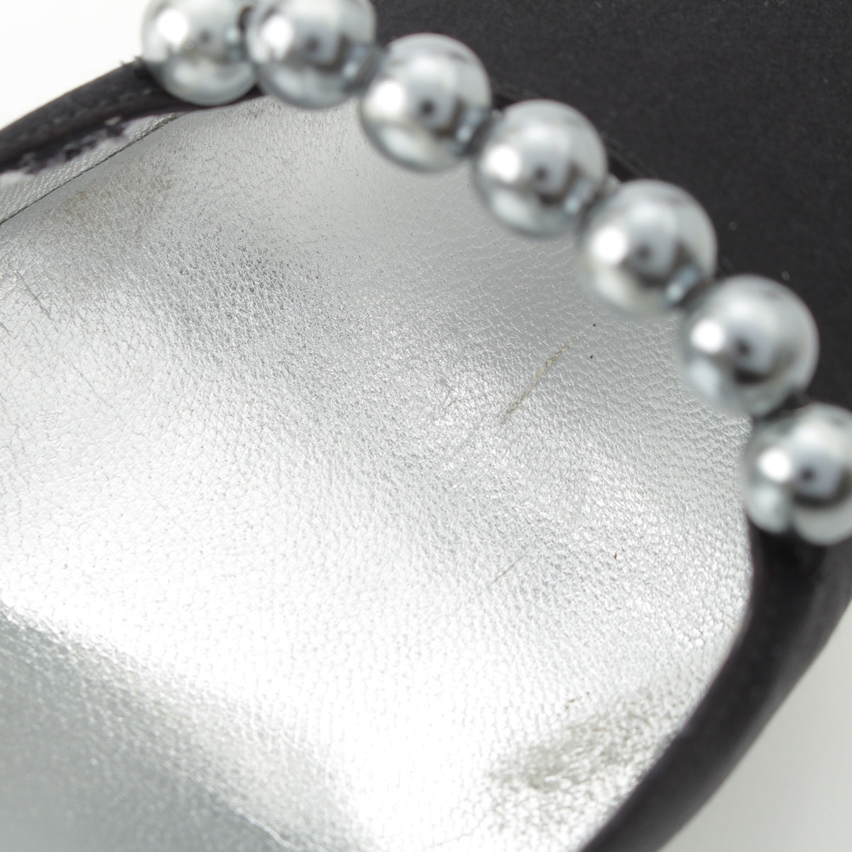 CHANEL Satin 05P Pearl Strap pumps black 34 1/2