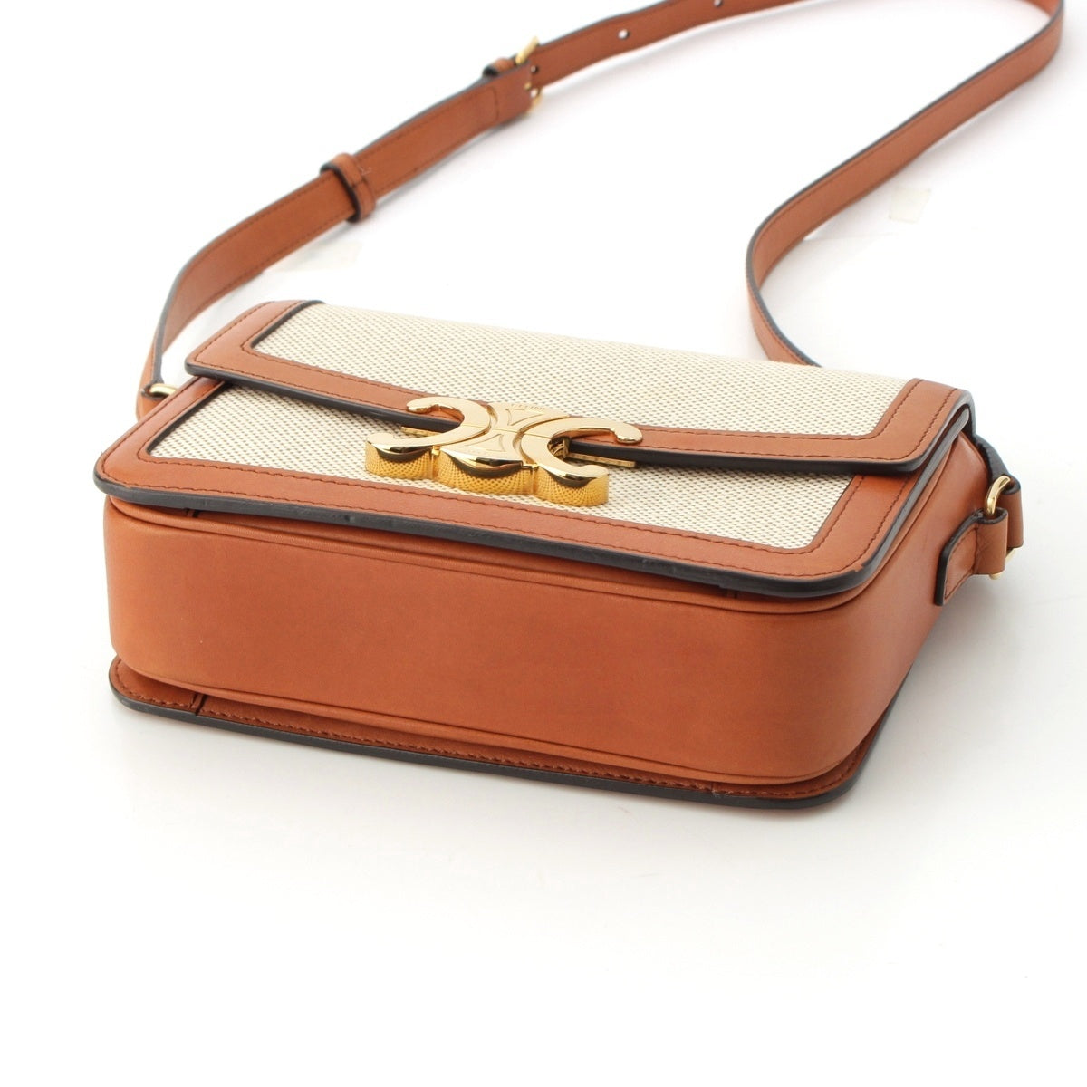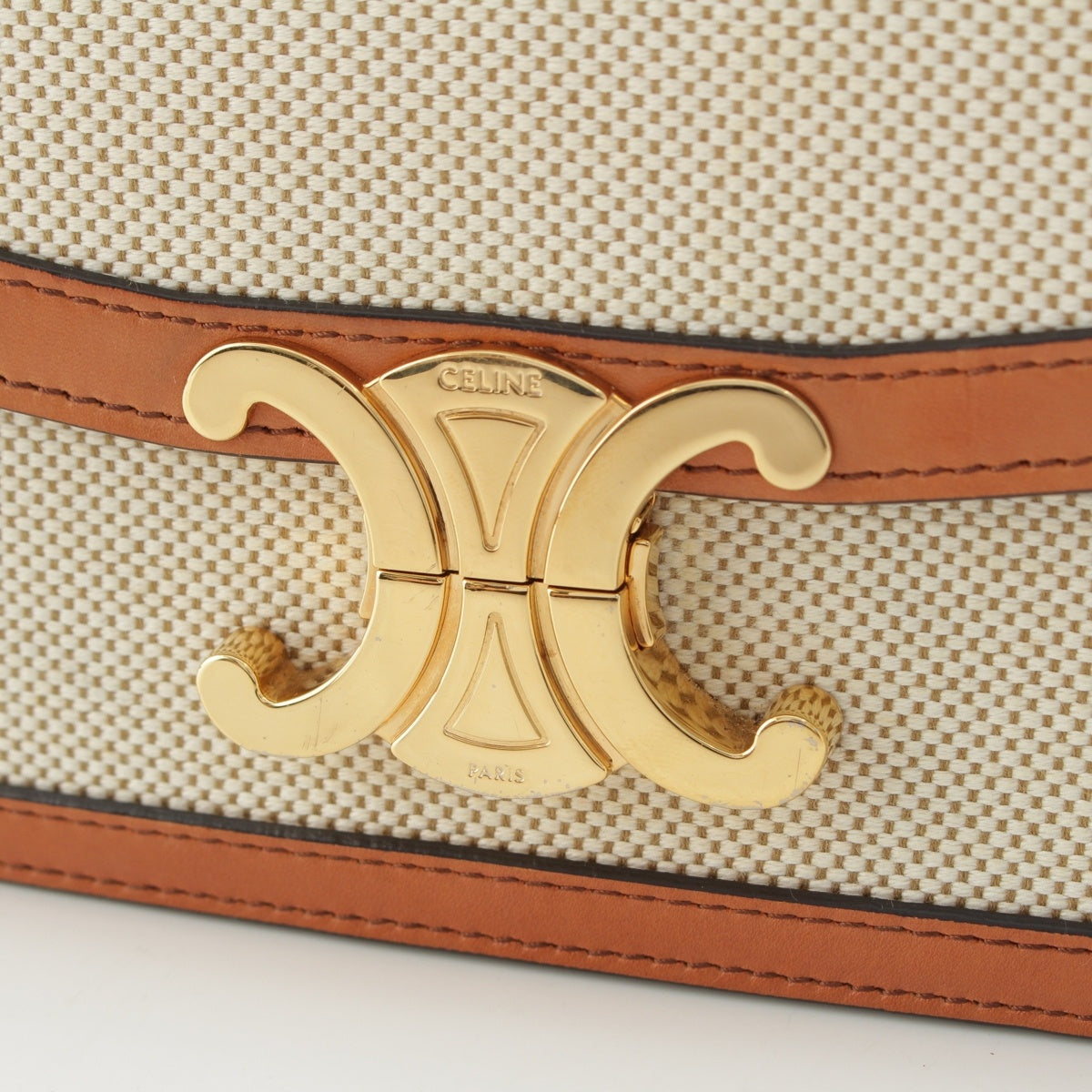 CELINE Canvas leather Teen Triomphe Shoulder Bag 188882EGC.02NT Natural tongue