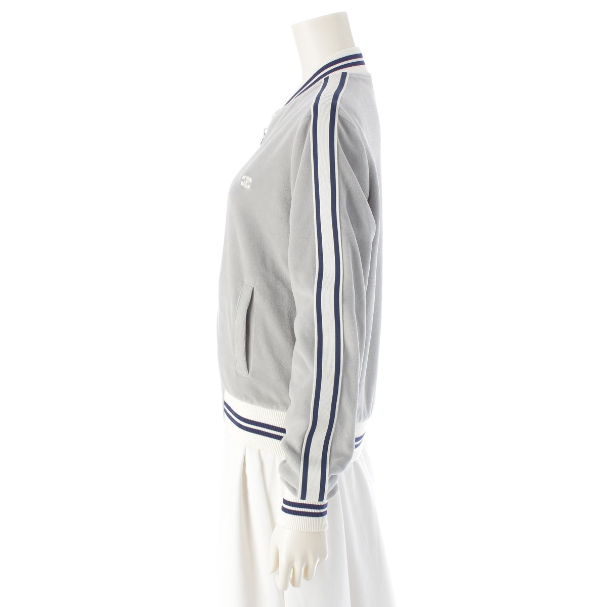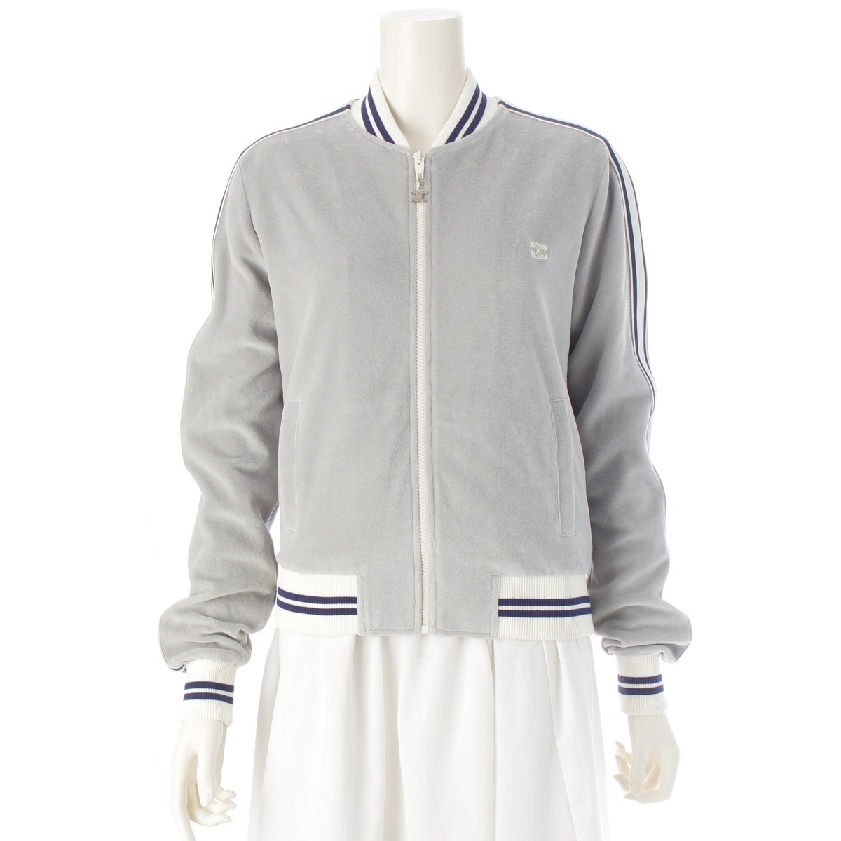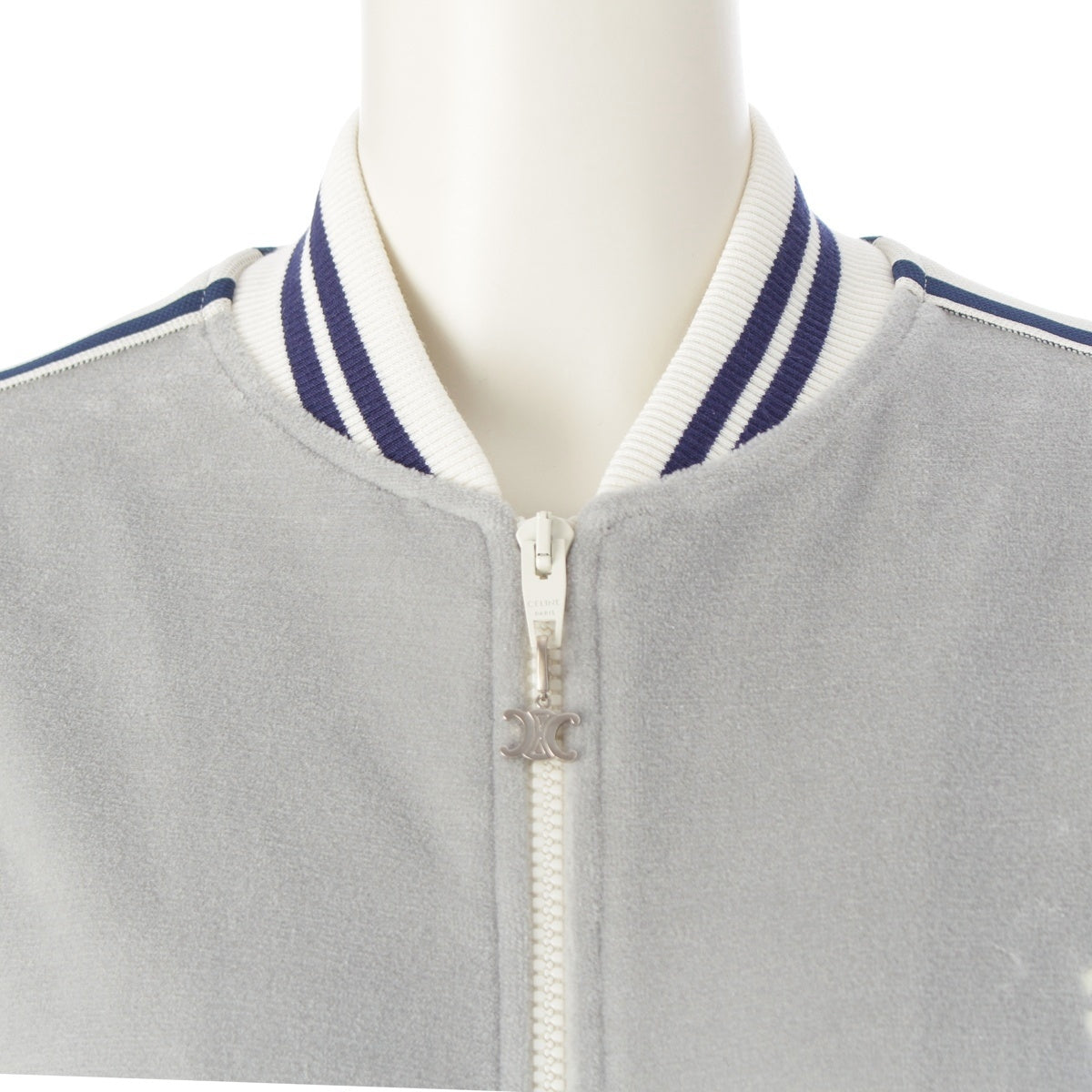 CELINE Cotton x nylon Triomphe Teddy Velvet Jersey Tracksuit Jacket RV0R1748Q Glaze x Navy x Ecru XS