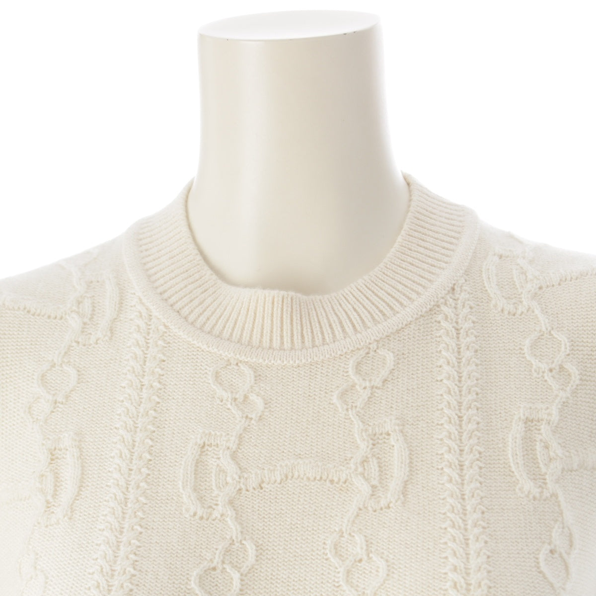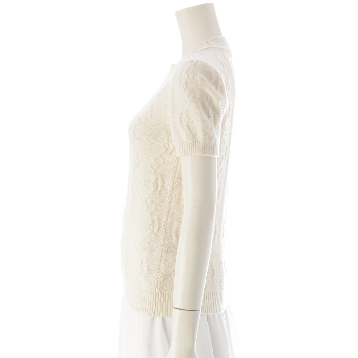 HERMES morning walk wool cashmere Short sleeve knit tops 2H2666D6 Ivory 36