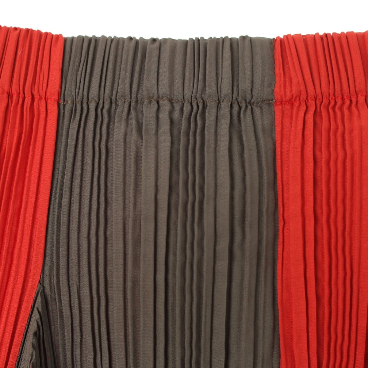 ISSEY MIYAKE Pleated Wide Striped Pants CURVED PANTS Pants khaki