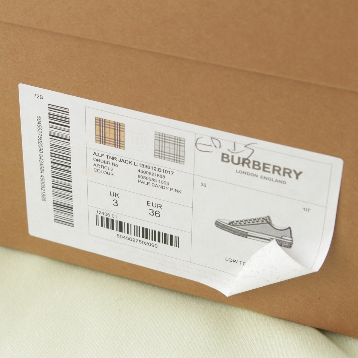 BURBERRY canvas Thick sole low cut sneakers shoes pink 36