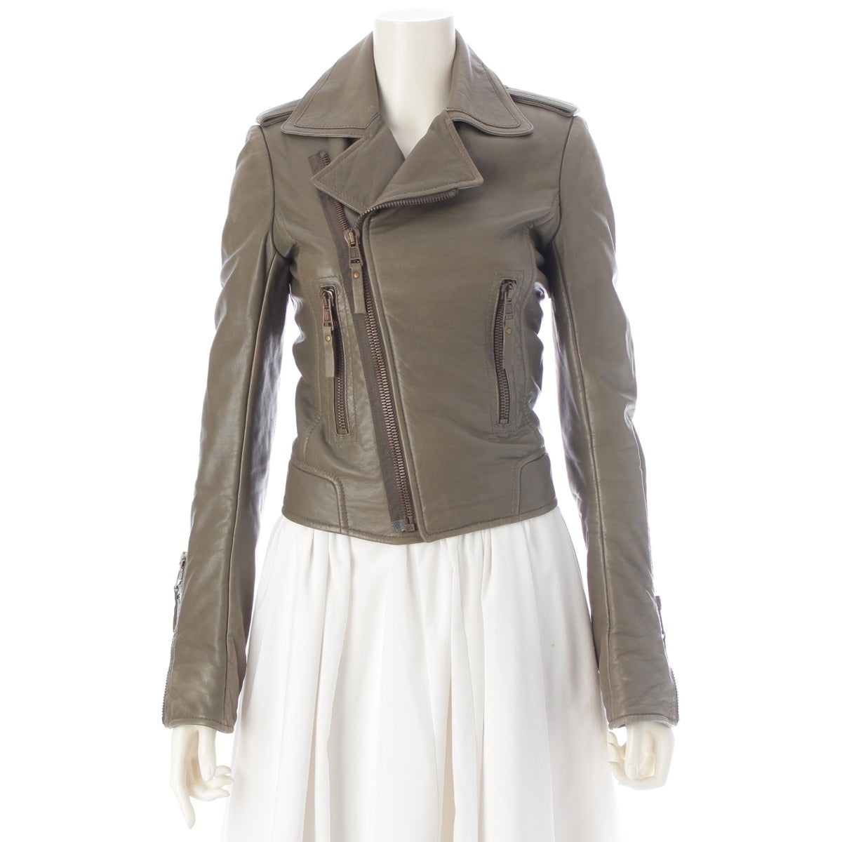 BALENCIAGA Leather Lambskin double-breasted blouson Riders jacket 180174 khaki 34