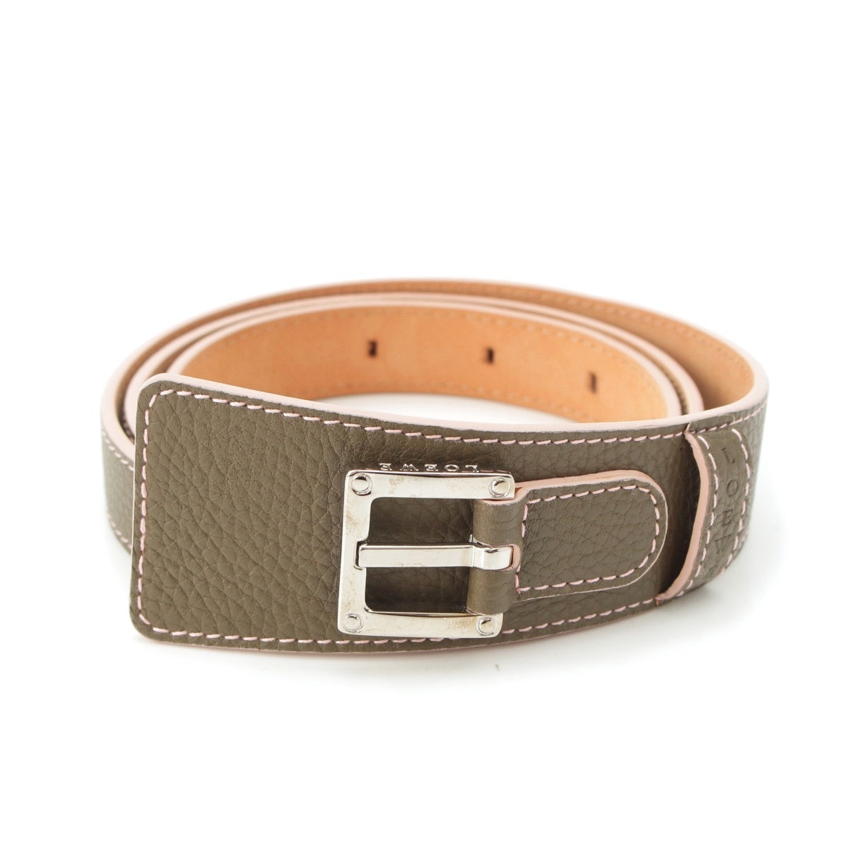 LOEWE leather Logo by color belt Khaki x Pink 34-85