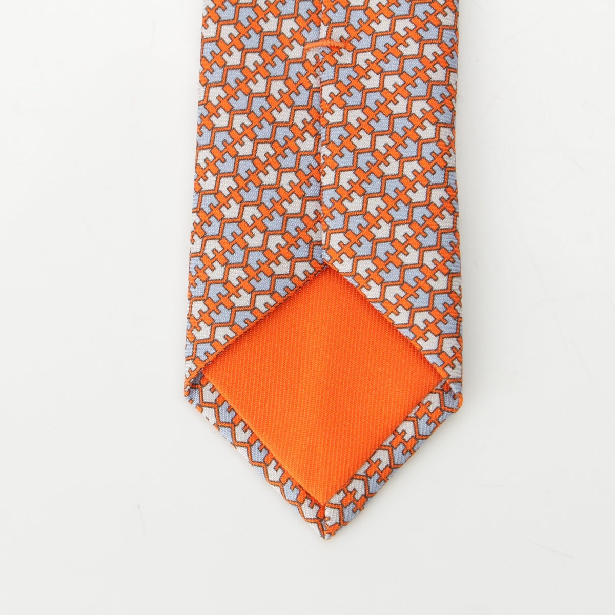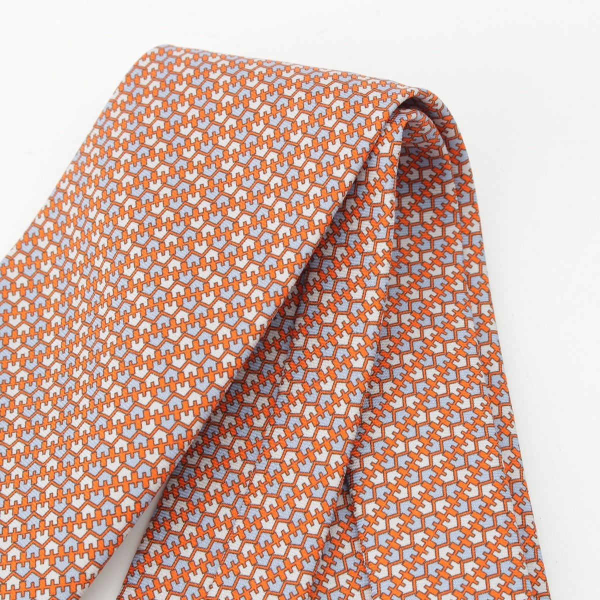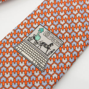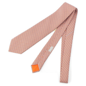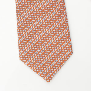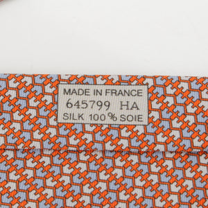 HERMES silk CRAVETE HEAVY TWILL tie Orange Ciel Ivory