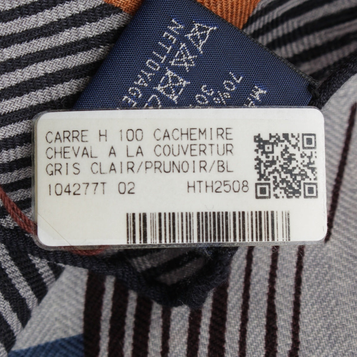 HERMES silk x cashmere Carre H 100 Horse Blanket Spiral scarf Gris Clair x Prunoir x Blue Moyen