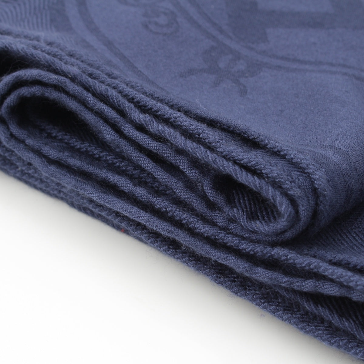 HERMES New Libris cashmere silk Fringe stole shawl Scarf blue