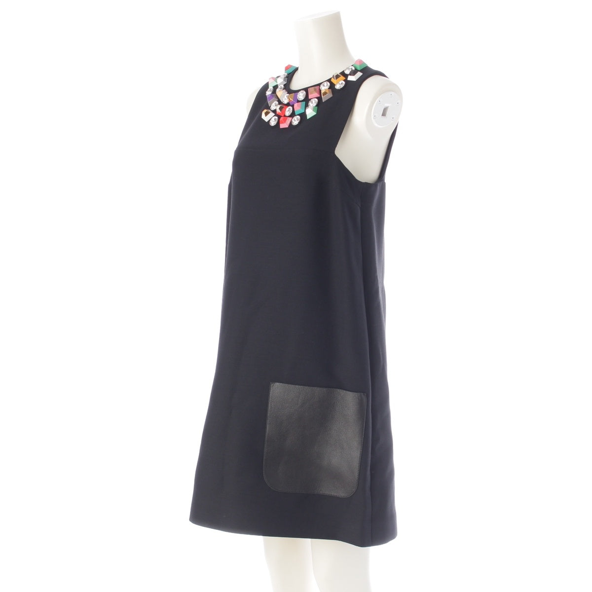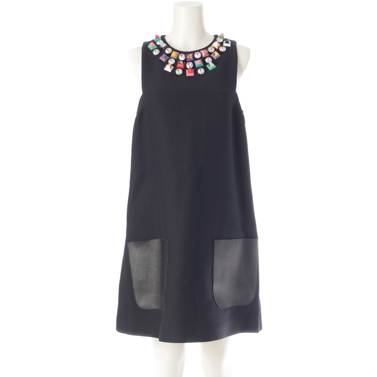 FENDI Wool silk studs sleeveless one piece dress FD8894 black 40