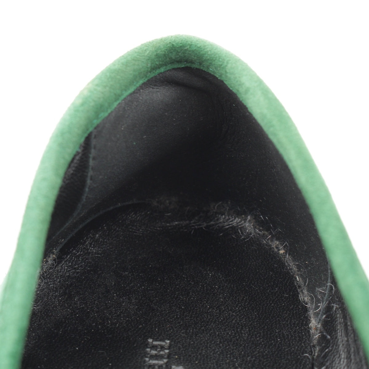 HERMES Paris Moccasin Suede Flat Shoes Silver Metal loafers green 39