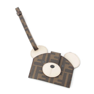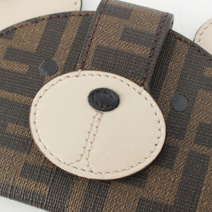 FENDI leather Best Friends Forever FF Fabric Bear Motif Card Case 8M0528 Brown
