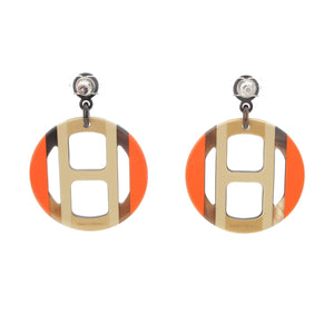 HERMES Buffalo horn Hermes H-equipe H motif Pierce Orange Brown