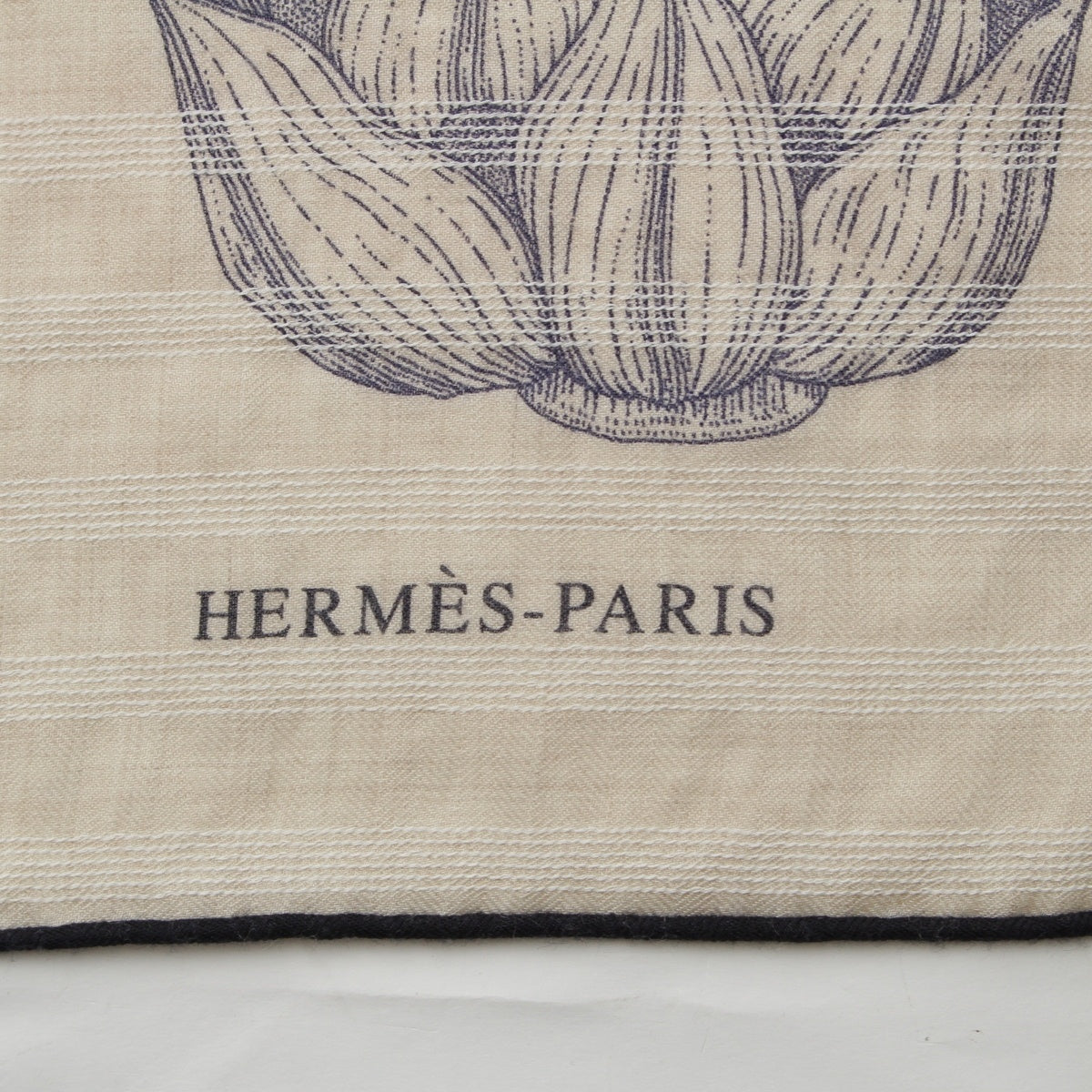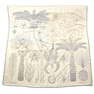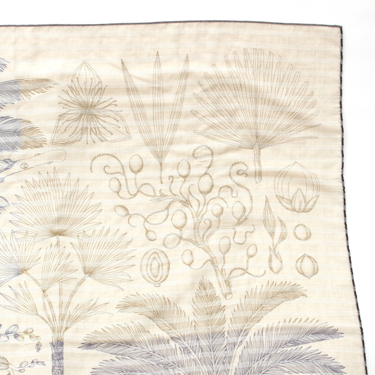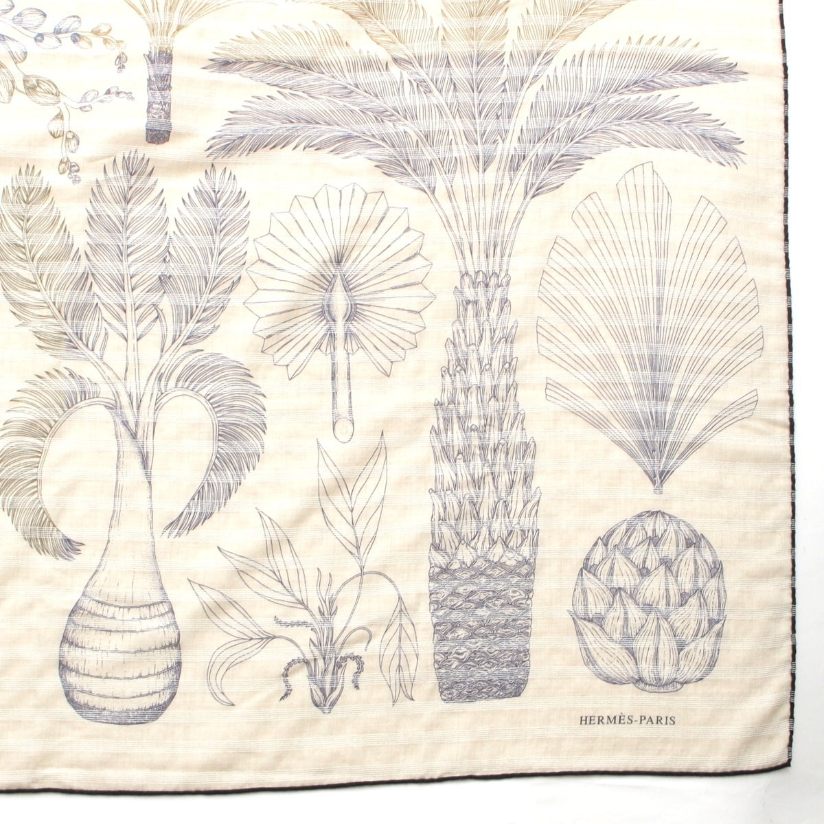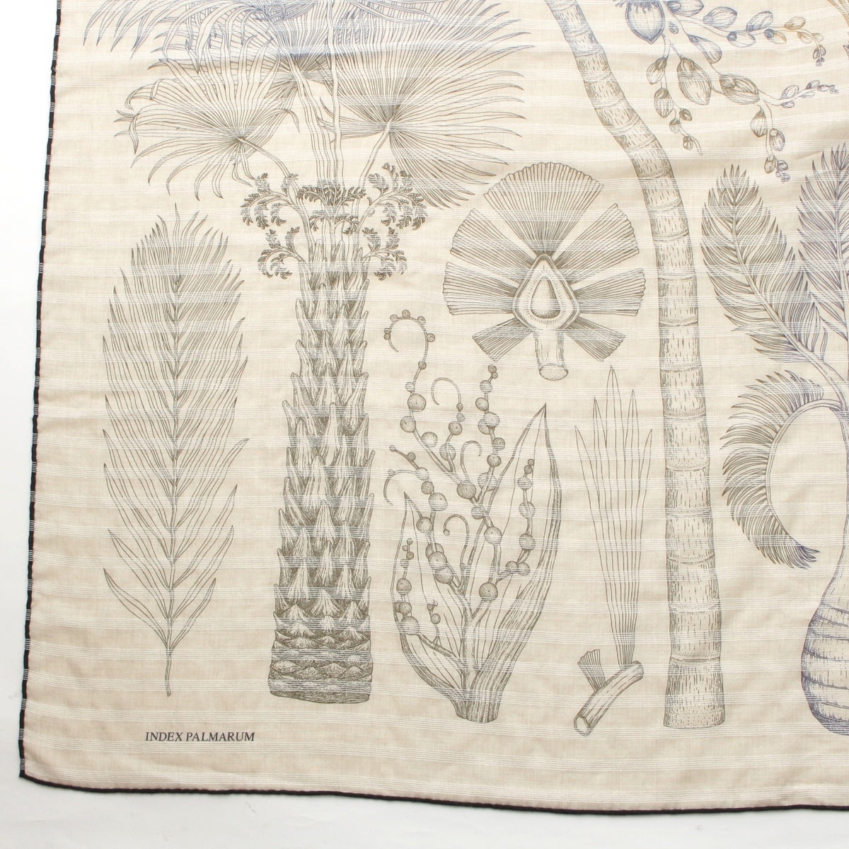 HERMES Carre cashmere silk Karegean INDEX PALMARUM Palm Tree Catalog Stitch Embroidery scarf beige 140