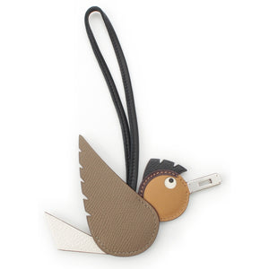 HERMES Epsom Swift Birdie Bird Bag charm Noir Etoupe Nata Biscuit