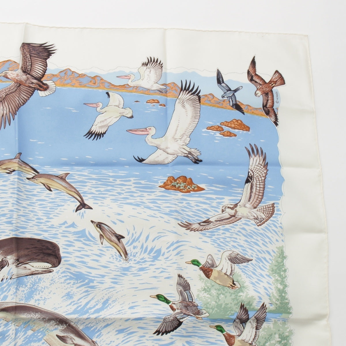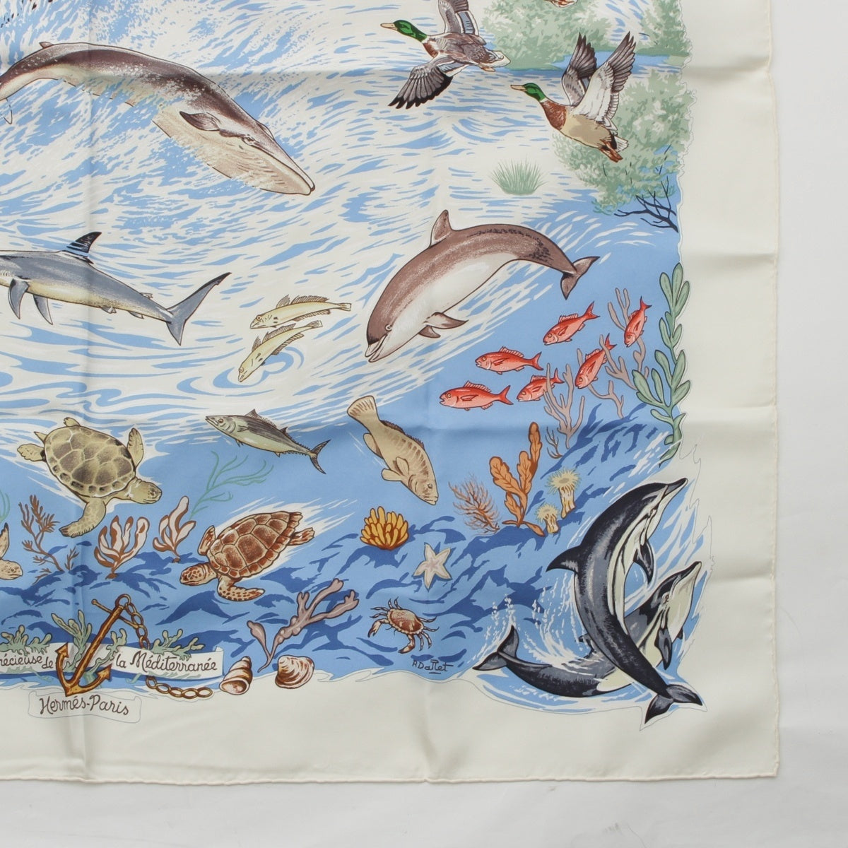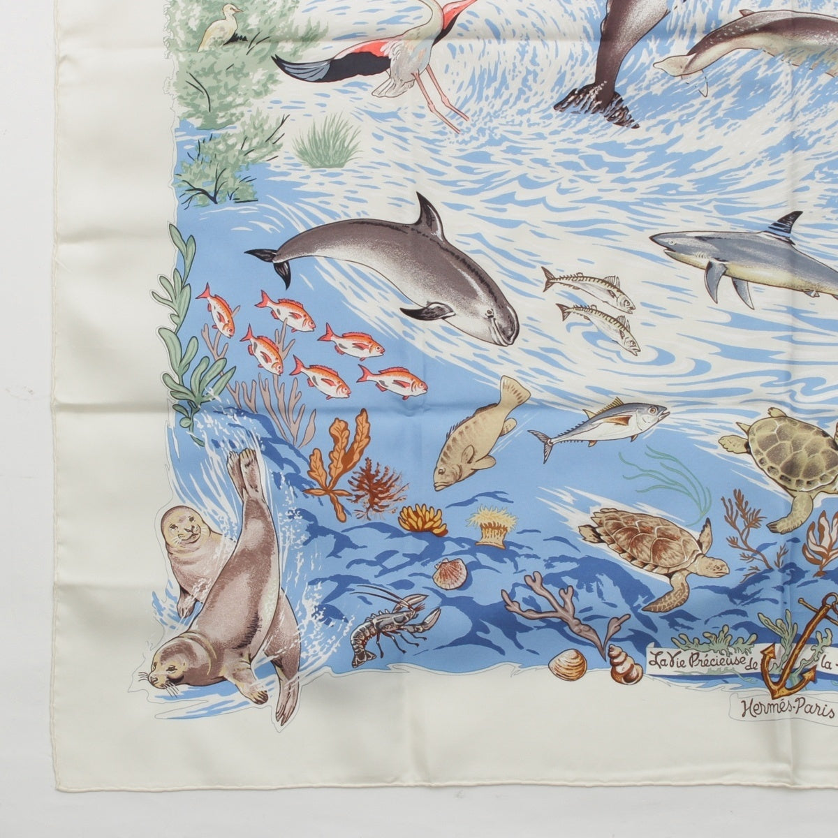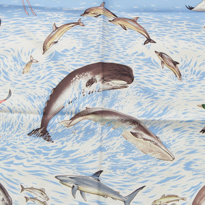 HERMES Carre 90 Lavie Precieuse de la Mediterranee Precious life in the Mediterranean silk scarf blue