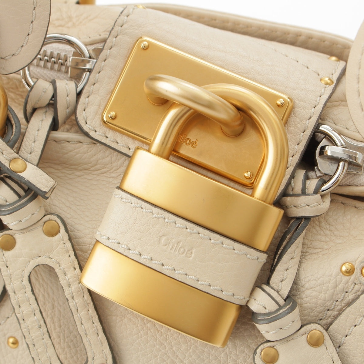 Chloe Paddington leather Medium size Matte Gold Metal Handbag Ivory