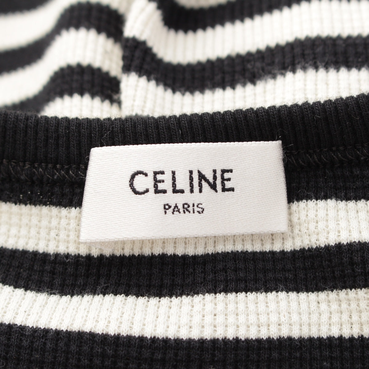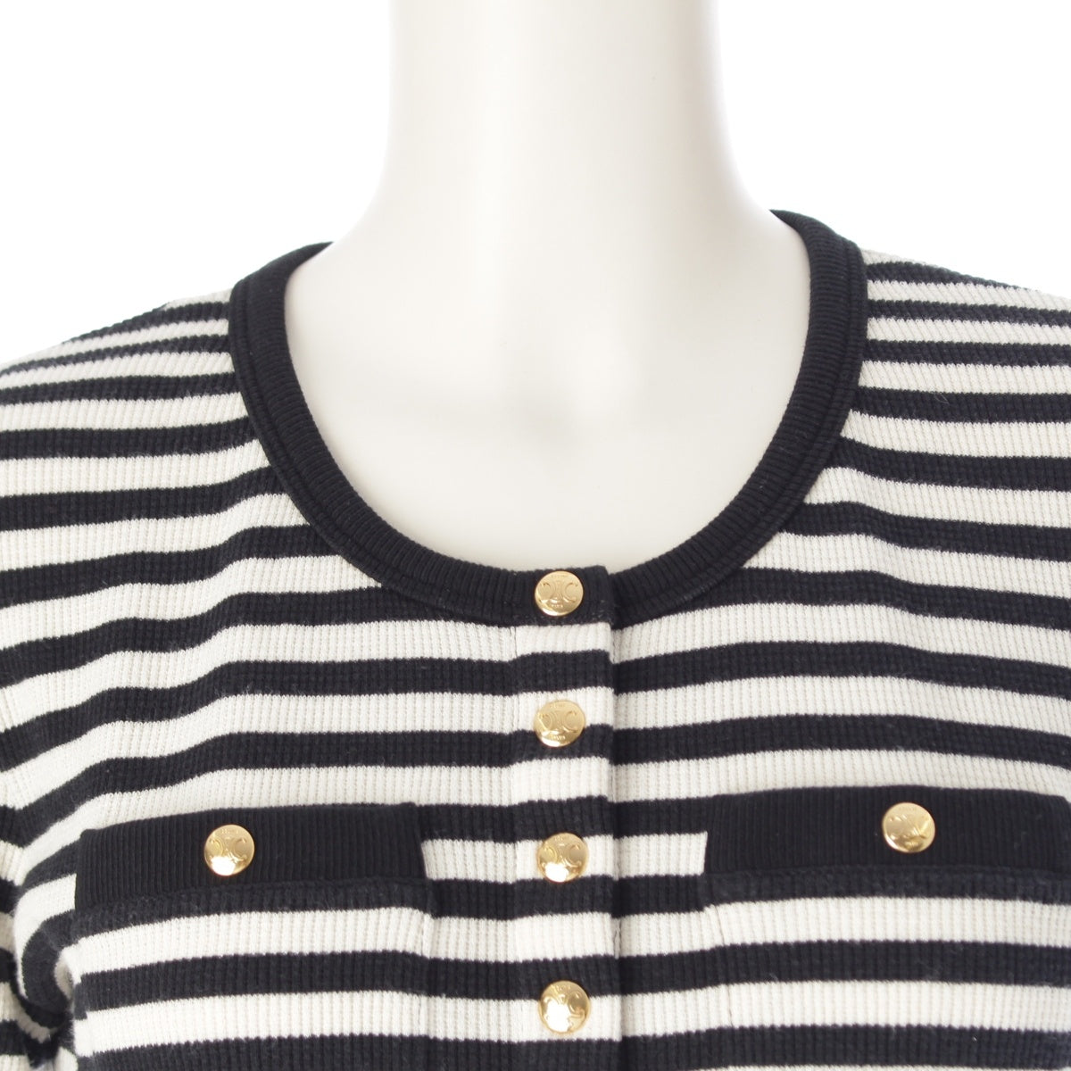 CELINE cotton Triomphe Button Border Short Sleeve knit tops 2X46H136K Black White S