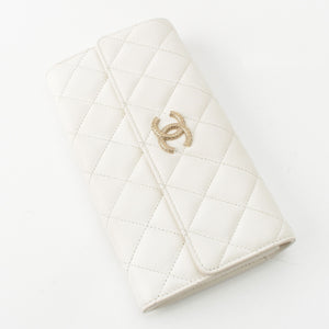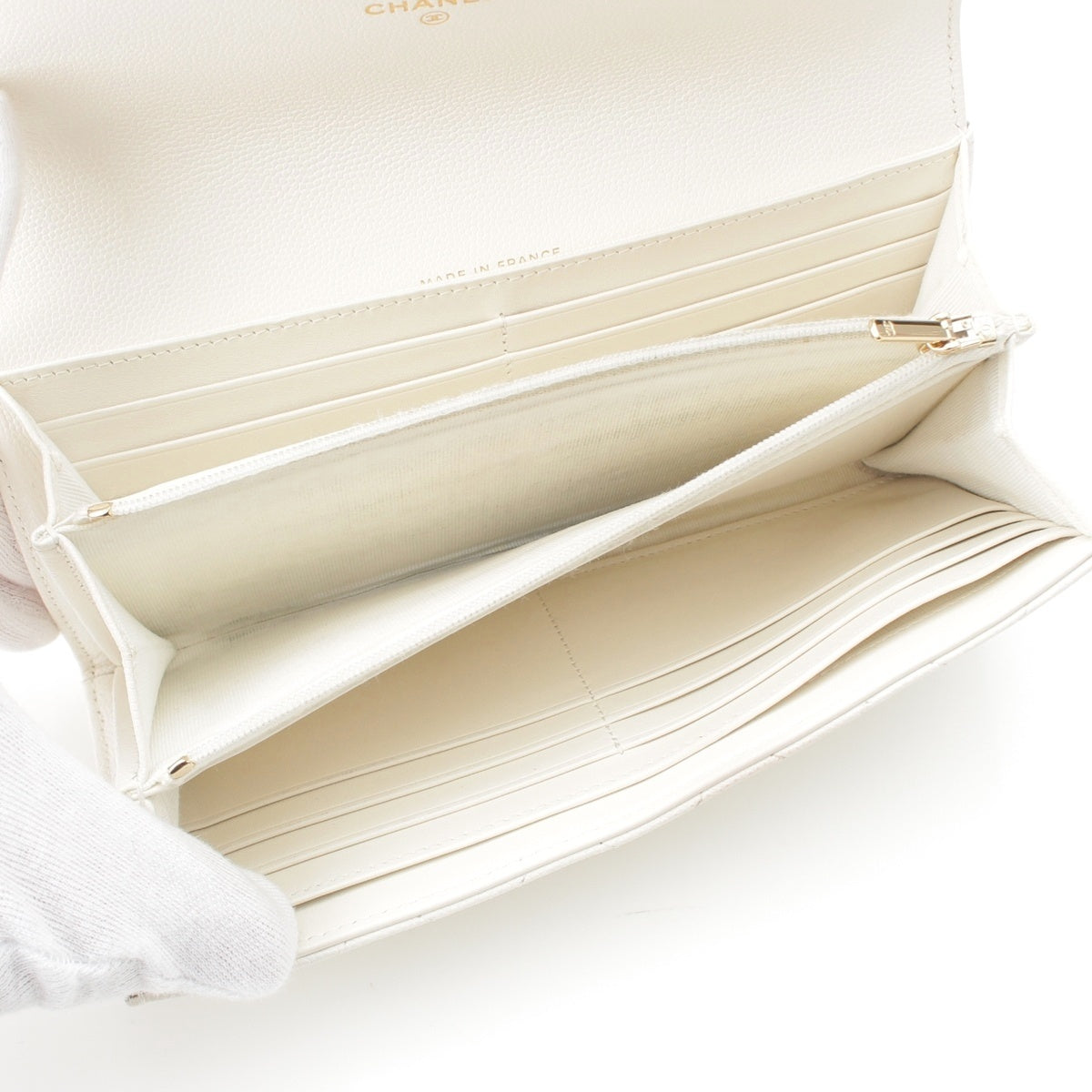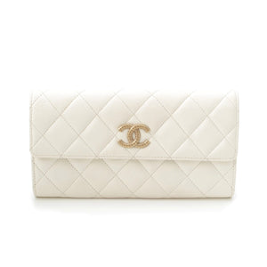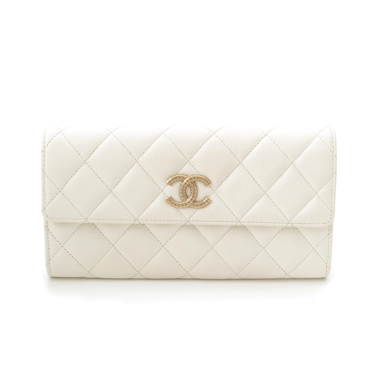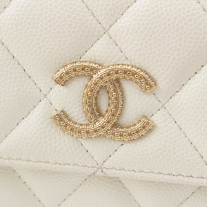 CHANEL 25A Caviar skin COCO Mark Long Wallet Purse AP4712 white