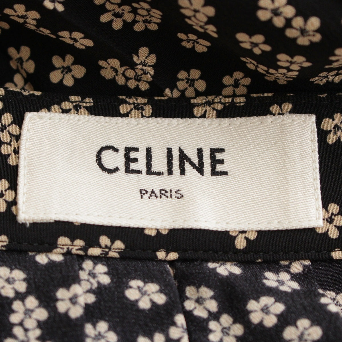 CELINE silk Eddie Evans floral print midi pleated top skirt 2J026479K black 38
