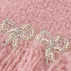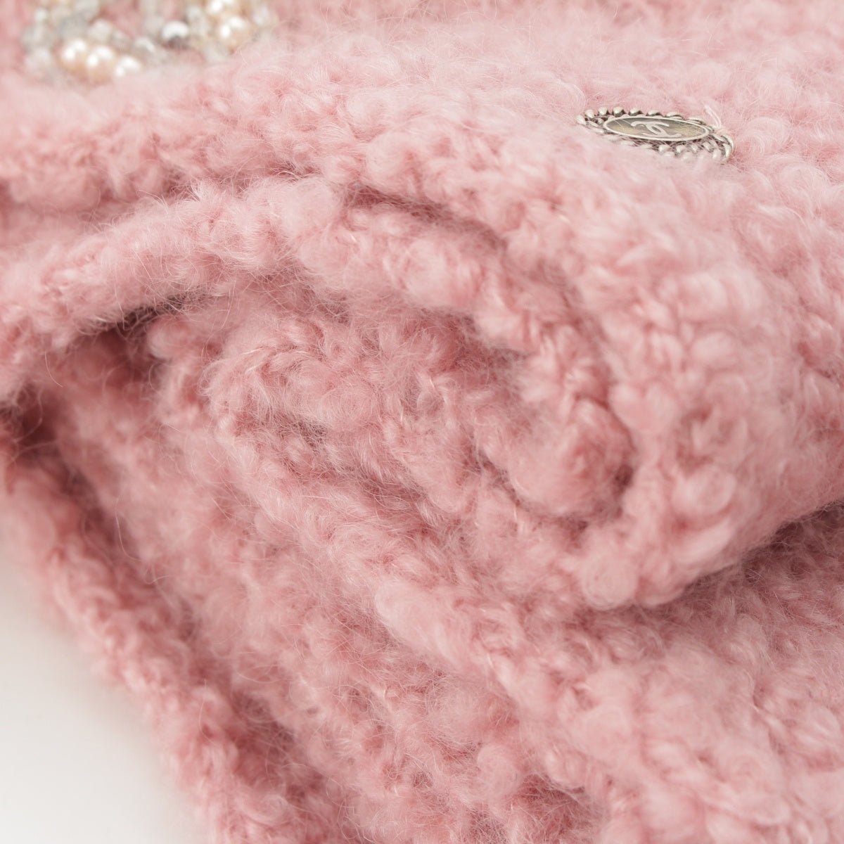 CHANEL wool mohair silk COCO Mark Charm Ribbon Design Scarf P26688 pink
