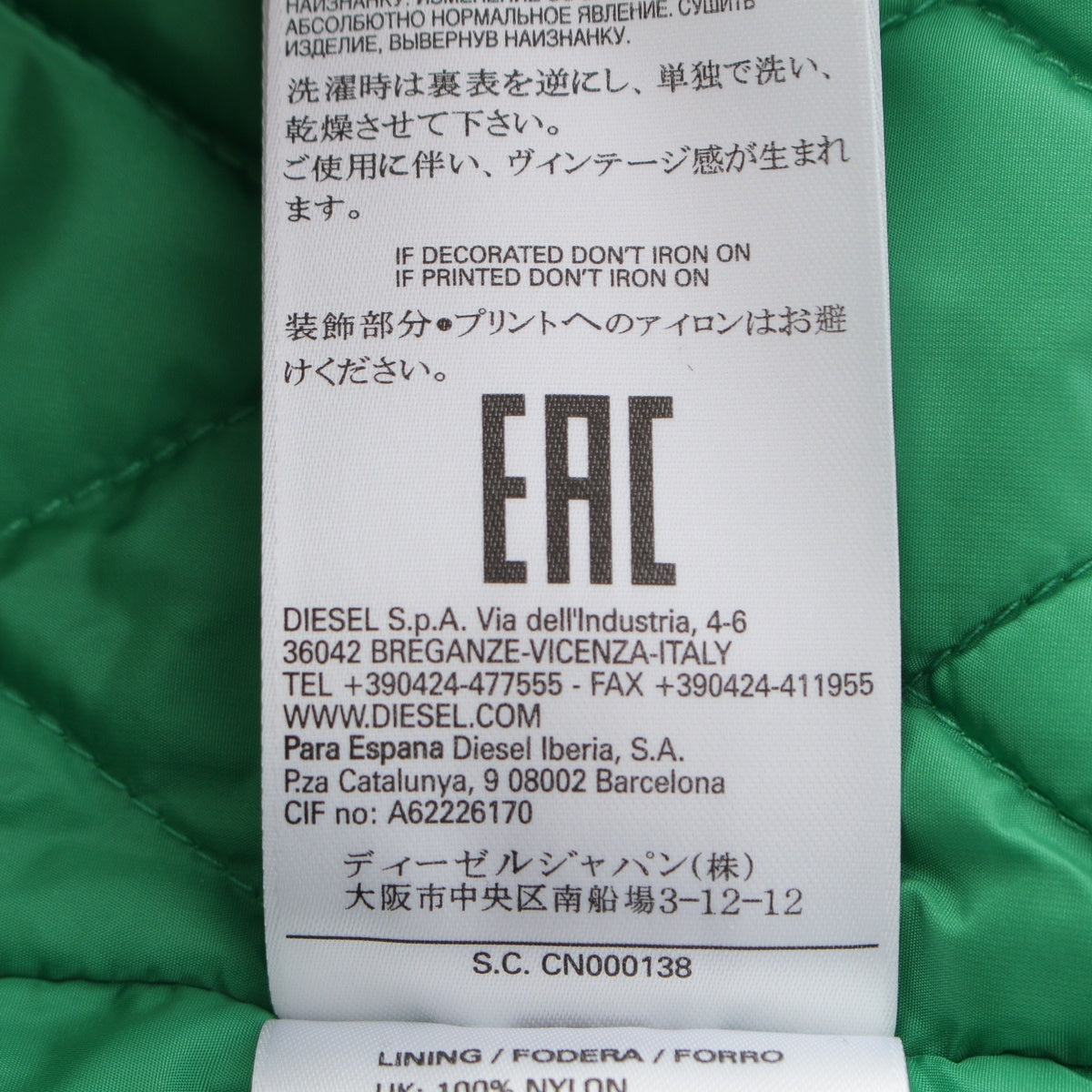 DIESEL Cotton filling coat outer green M
