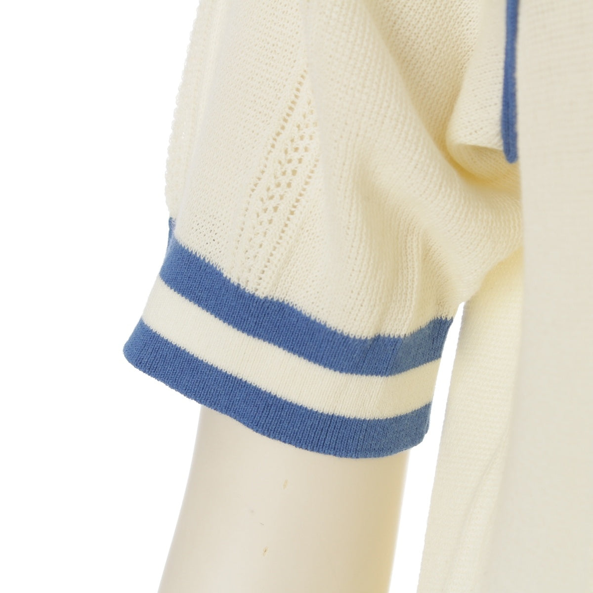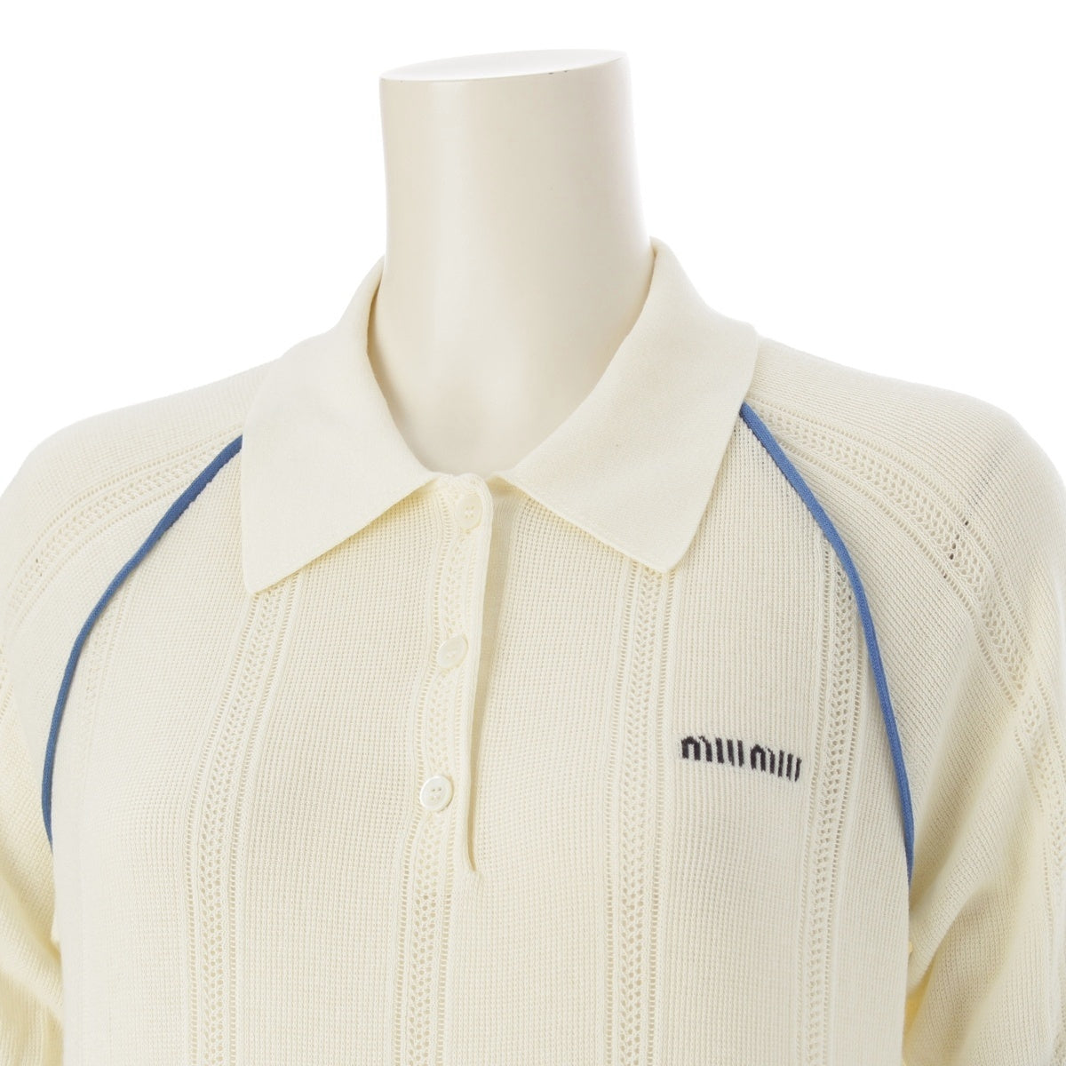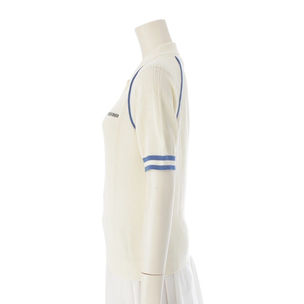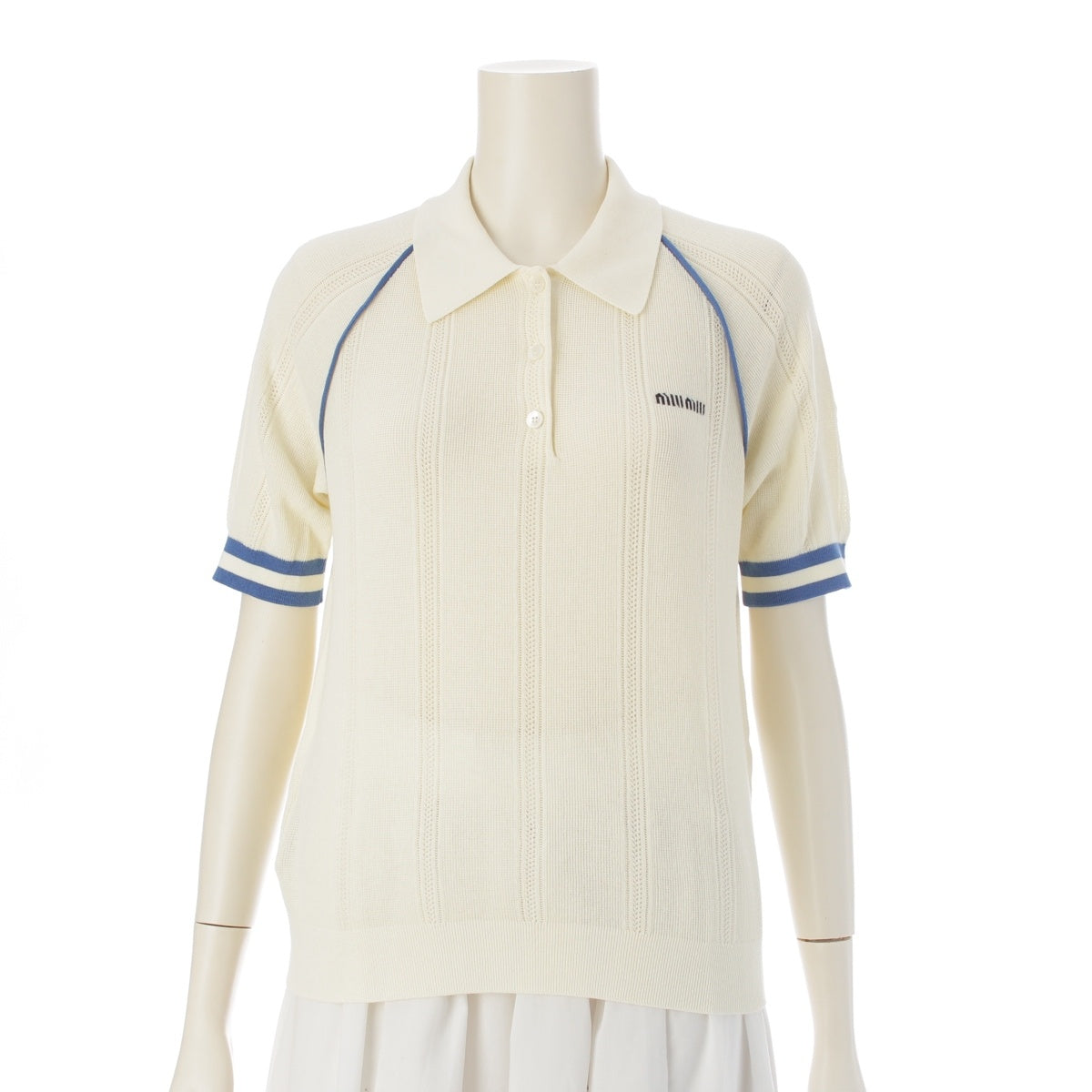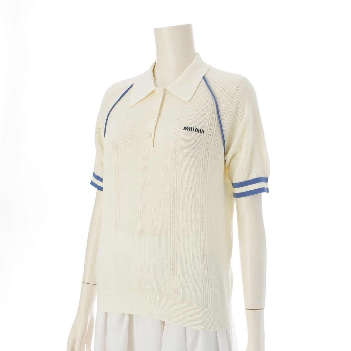 MIUMIU cotton Piping Logo Short Sleeve Polo shirt MMLB39 Off-white blue 38