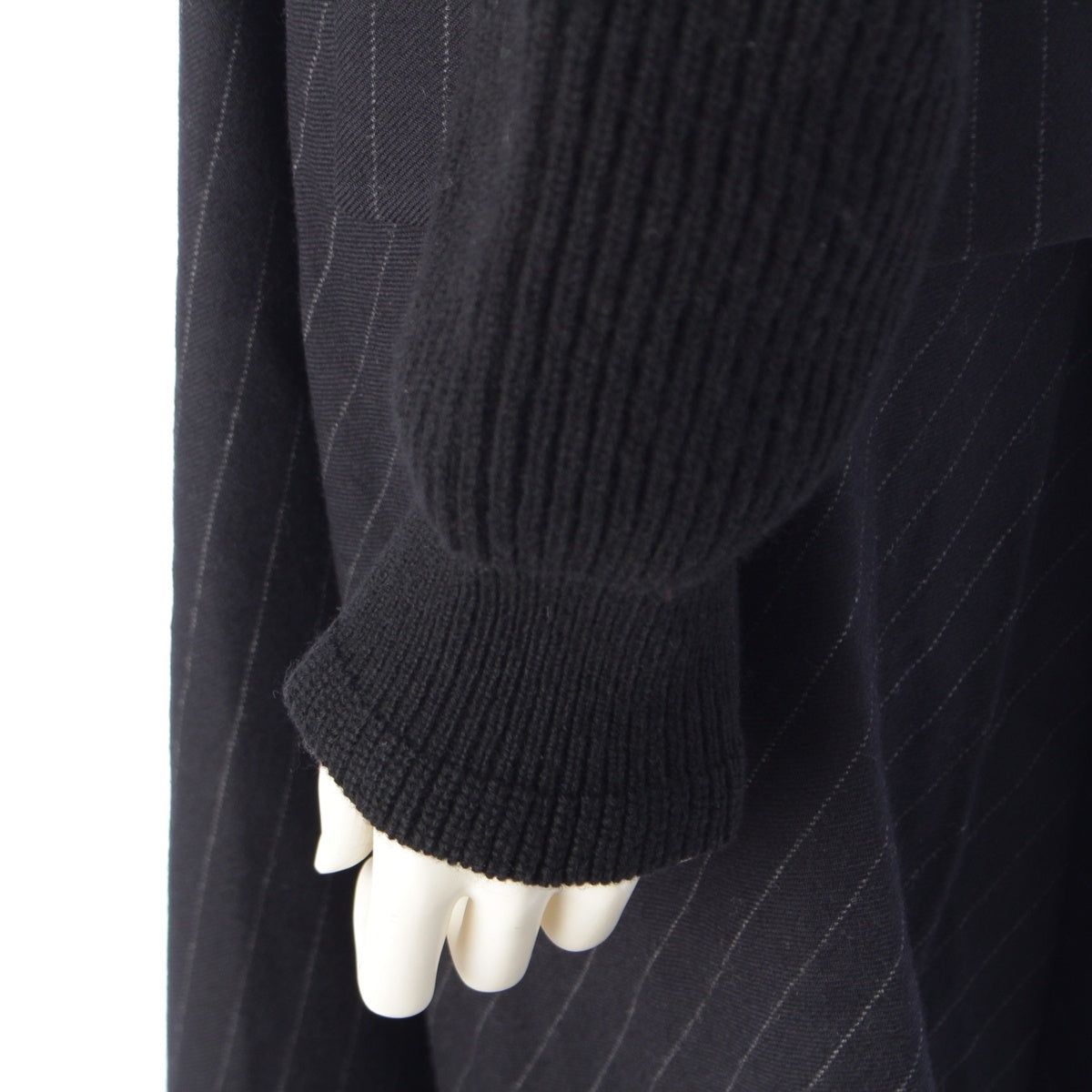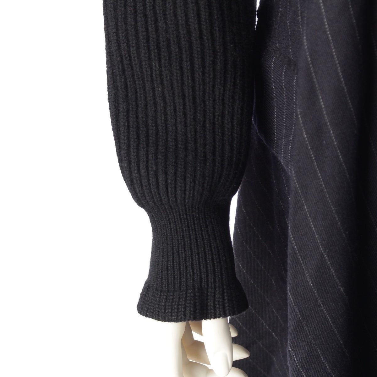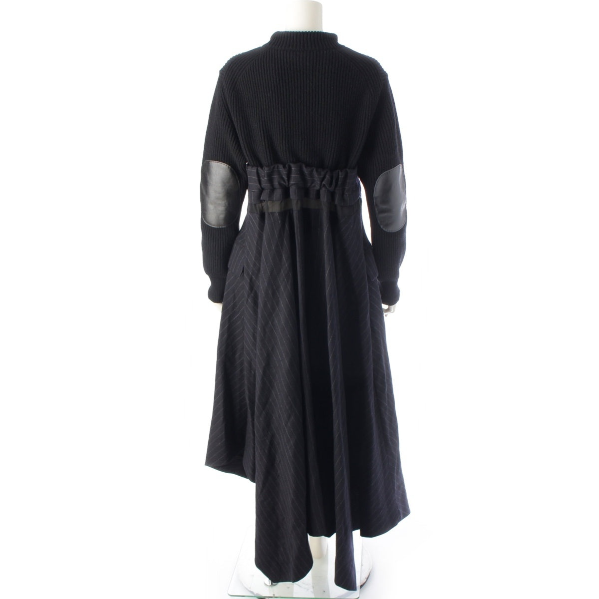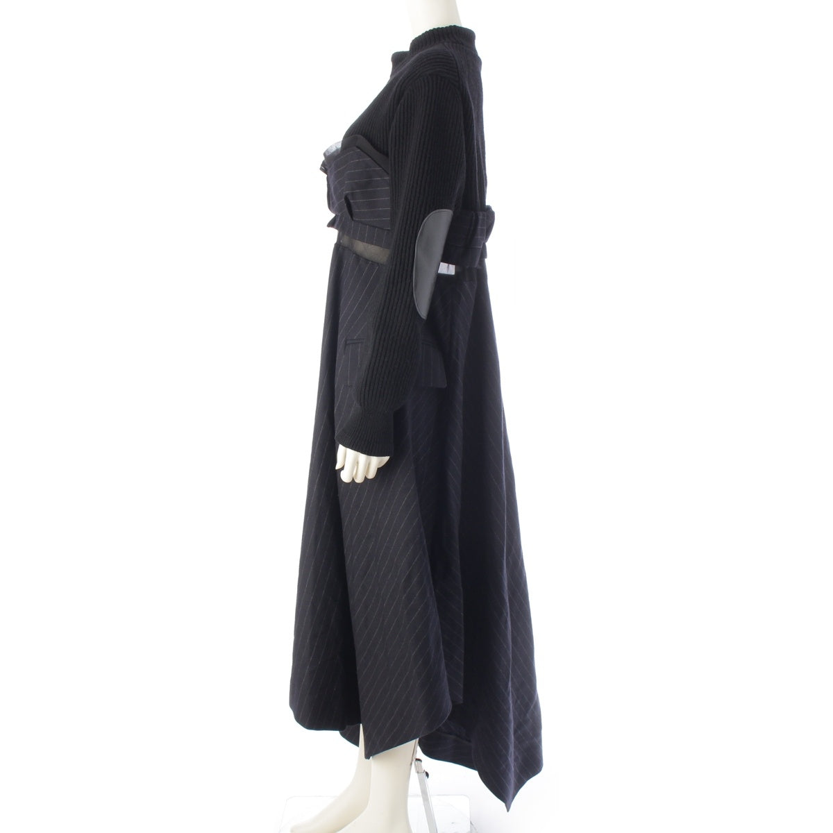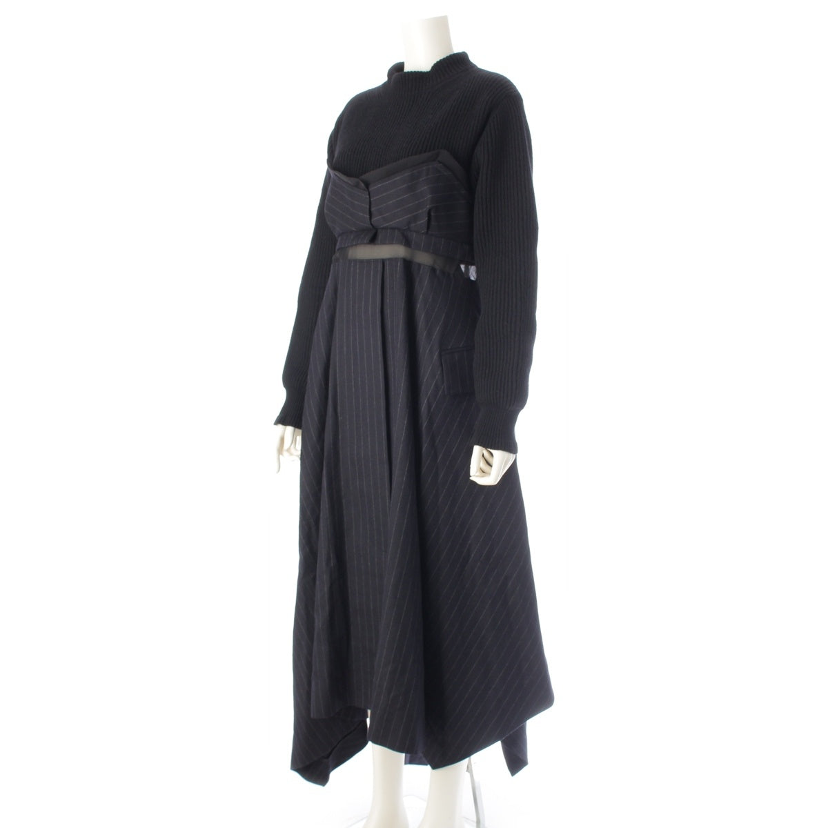 Sacai Wool Knit x Chalk Stripe Switch one piece dress 22-06327 Black x navy 2