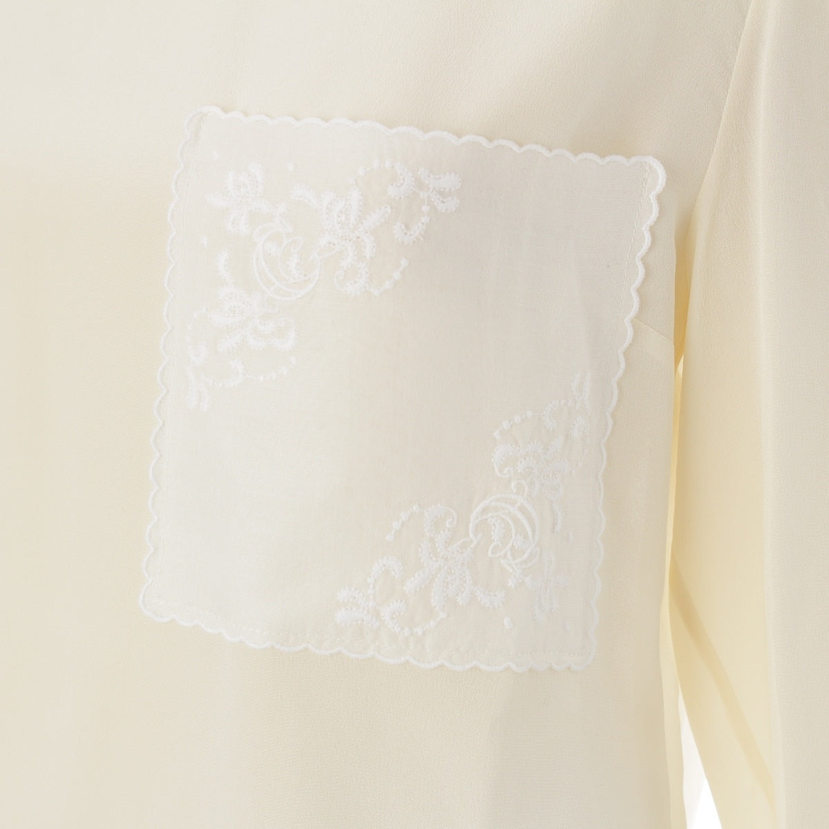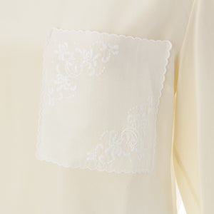 Chloe silk Logo embroidered pocket crew neck sheer shirt blouse CHC22SHT2300411534 Ivory 34